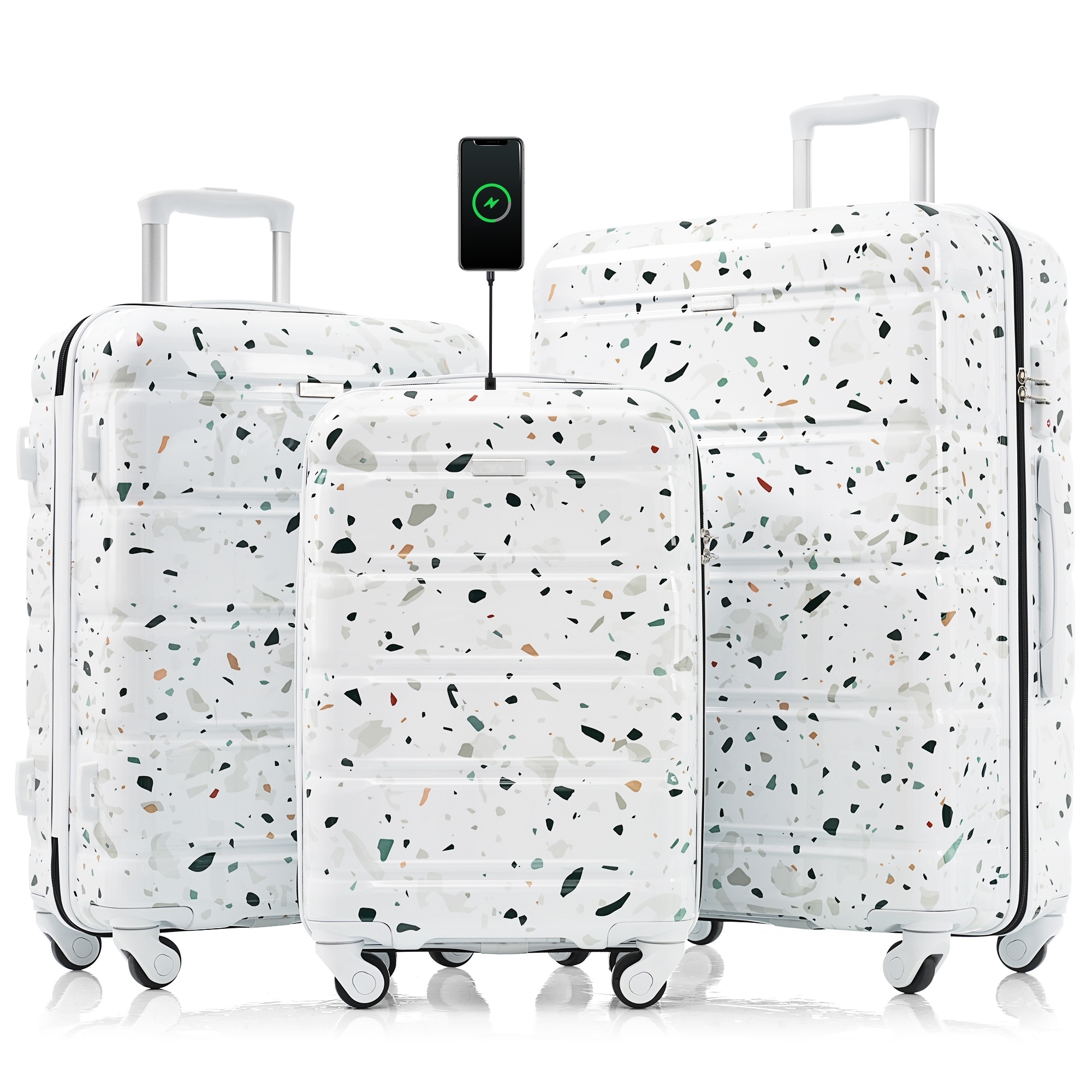 Luggage Set of 3, 20-inch with USB Port, Airline Certified Carry-on Luggage , ABS+PC Hard Shell Luggage with Spinner Wheels