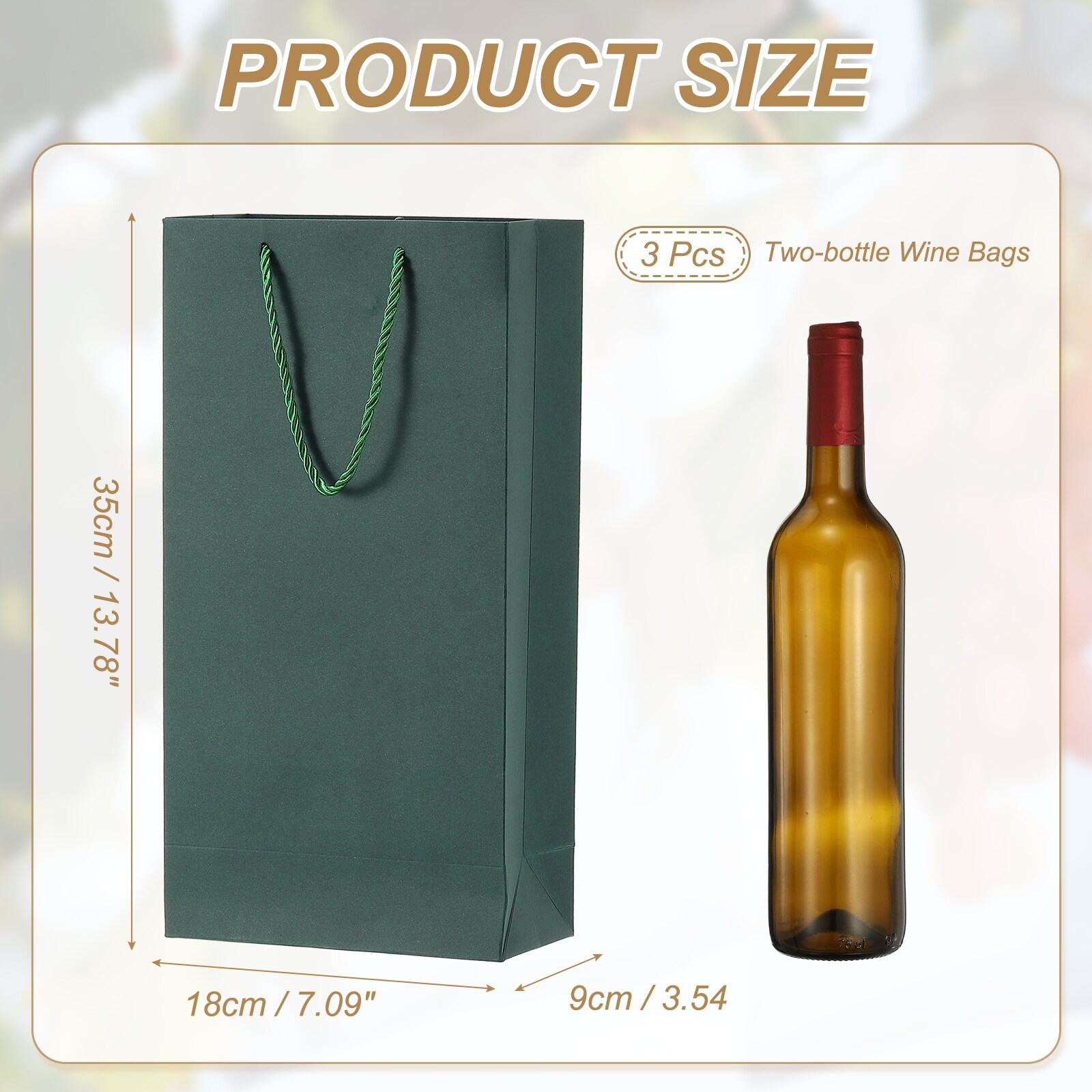 Wine Gift Bag, Double Bottle Kraft Paper Wine Bags Gift Tote Carrier Bottle Bag with Handles Bulk for Wedding