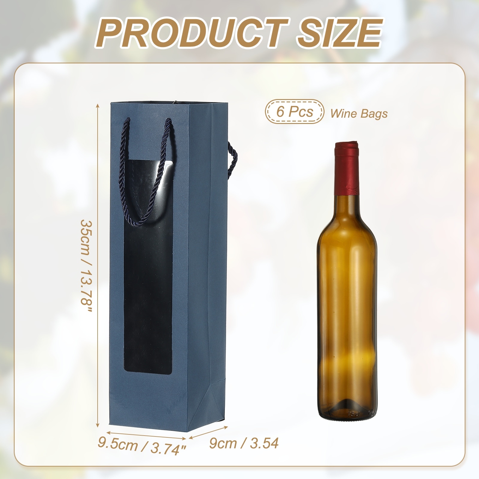 Wine Gift Bag, Bottle Kraft Paper Wine Bags Gift Tote Carrier Bottle Bag with Handles Bulk - 13.7" x 3.7" x 3.5"
