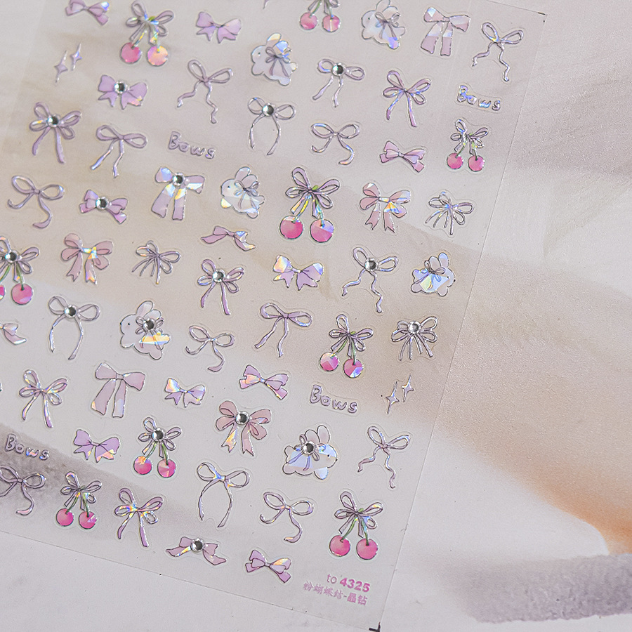 1 Piece Kawaii Red Cherry Bow Nail Stickers 5D Cute Fruit Design Adhesive Decorative Stickers For High Quality Nail Art to4325