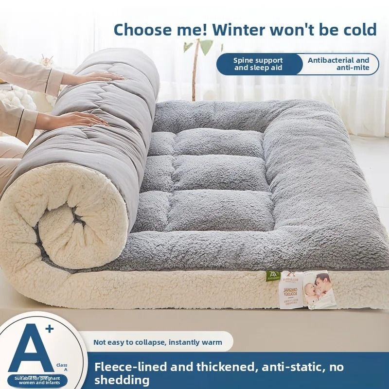 Thiened Lamb Velvet Mattress Pad Warm Soft Foldable Bedding For Home And Dorm 180 X 200 Cm Double Mattress peach Powder