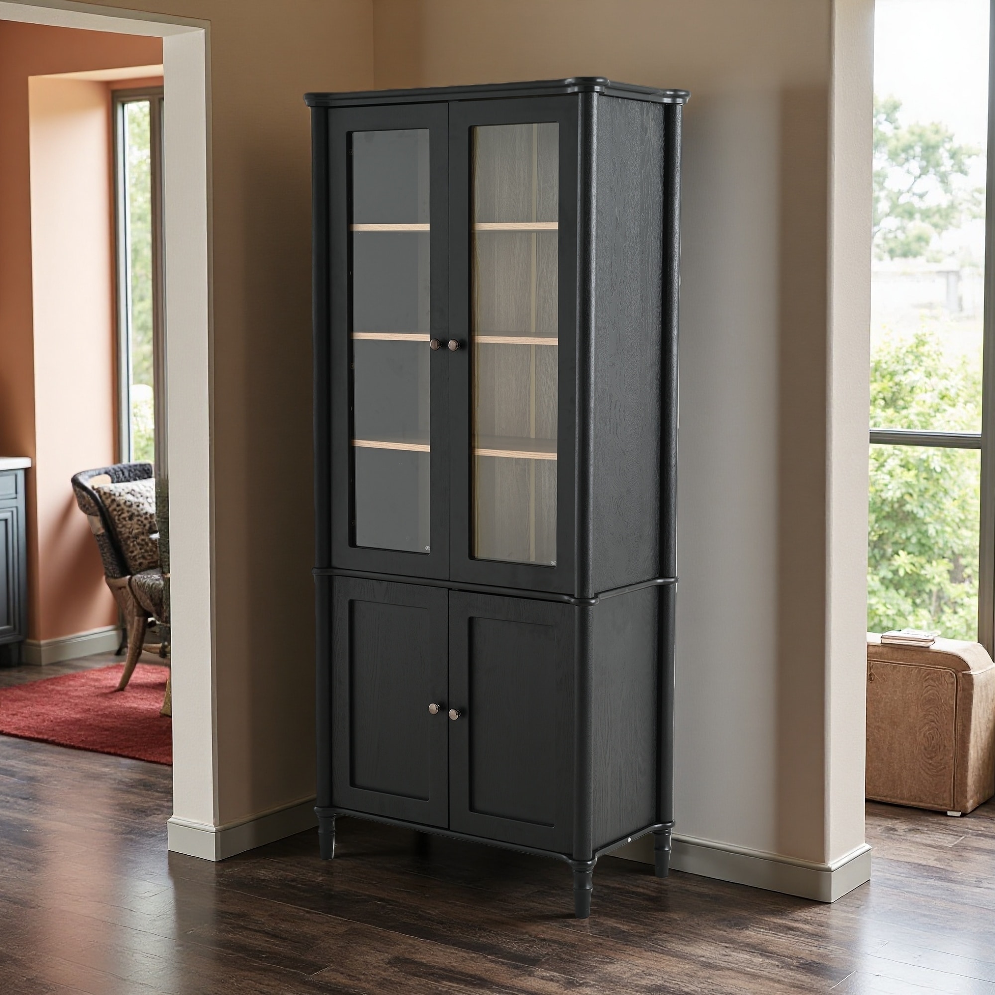 73.25"H Display Cabinet, Pantry Cabinet with Glass Doors, 4 Adjustable Shelves, Curio Cabinet with Storage for Living Room