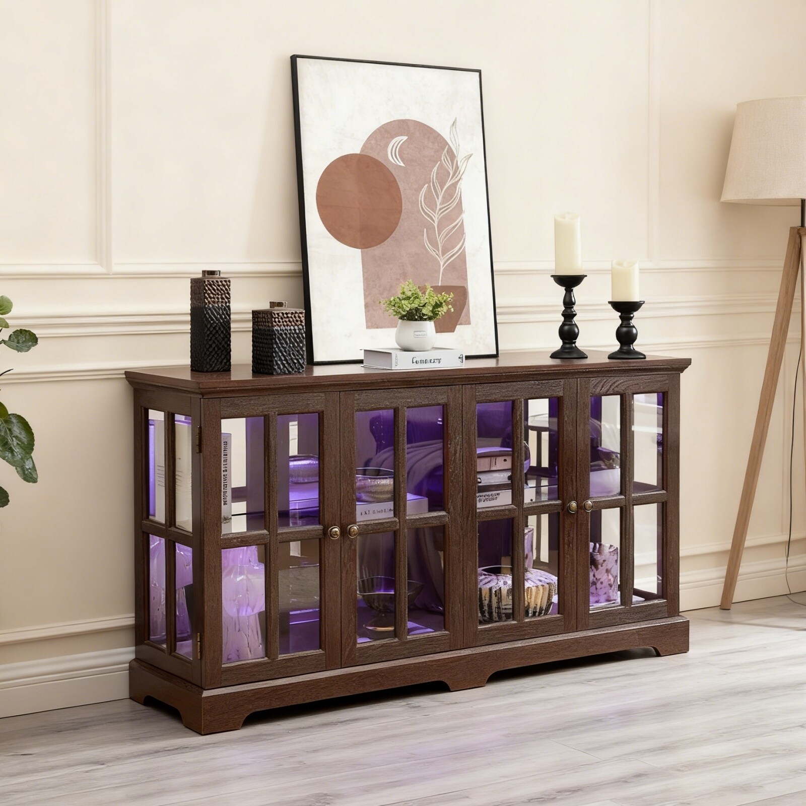 LED Antique Glass Curio Display Cabinet Showcase with 4 Lattice Doors