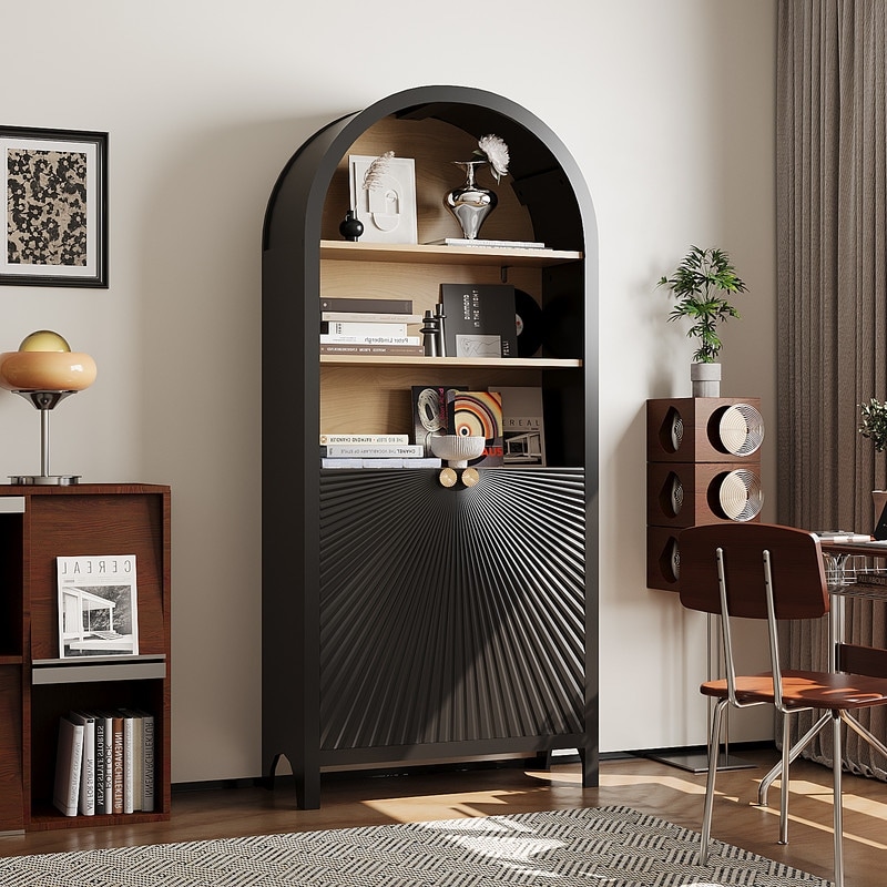 61" Tall Arched Bookcase with storage,Mid-Century Modern 5-Tier Bookshelf with Door