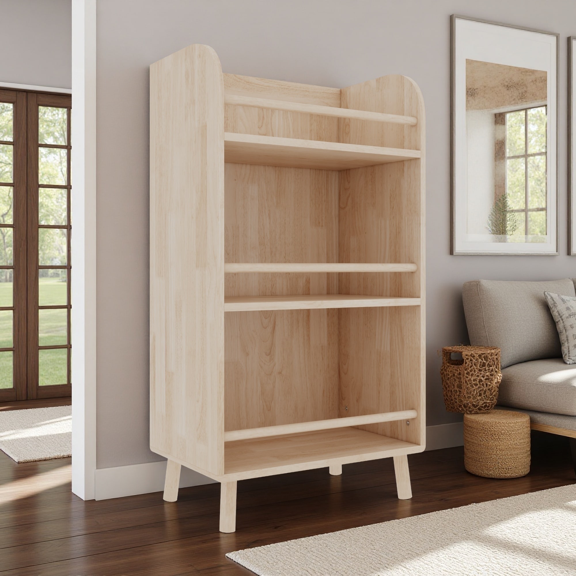 36.61"H Pine Wood Bookshelf, 0.6" Thick, Heavy Duty Storage, Living Room Library