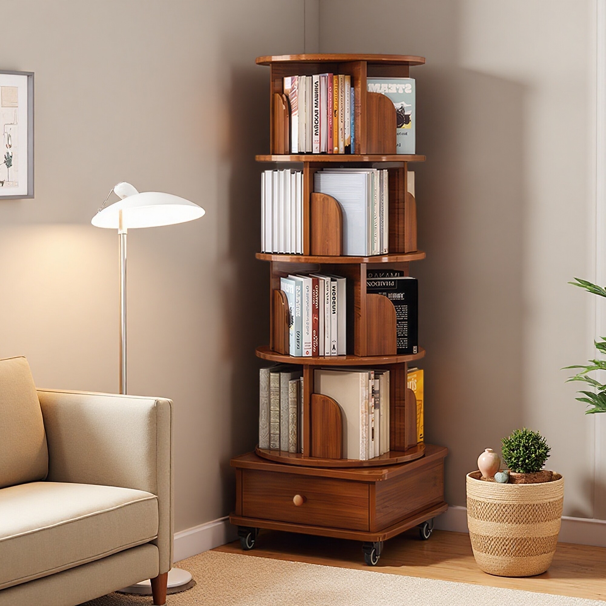 Moasis 50"H 4-Tier Rotating Bookcase Corner Bookshelf Narrow Shelf Storage Organizer