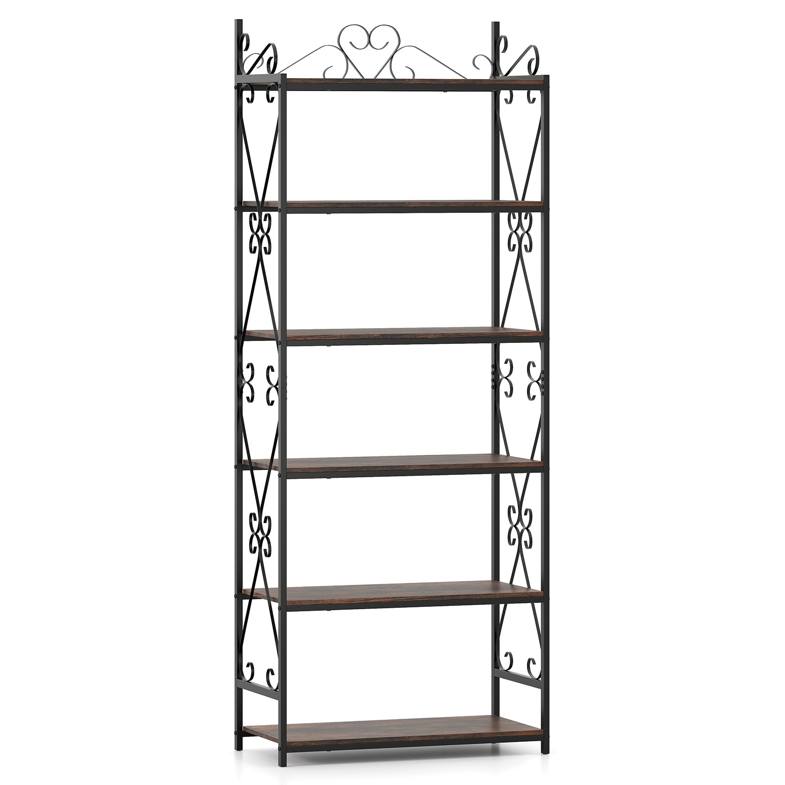 5 Tiers Wood Household Shelving Unit in Americano/Black (23.6 in. W x 57.4 in. H x 11.6 in. D) - 23.6