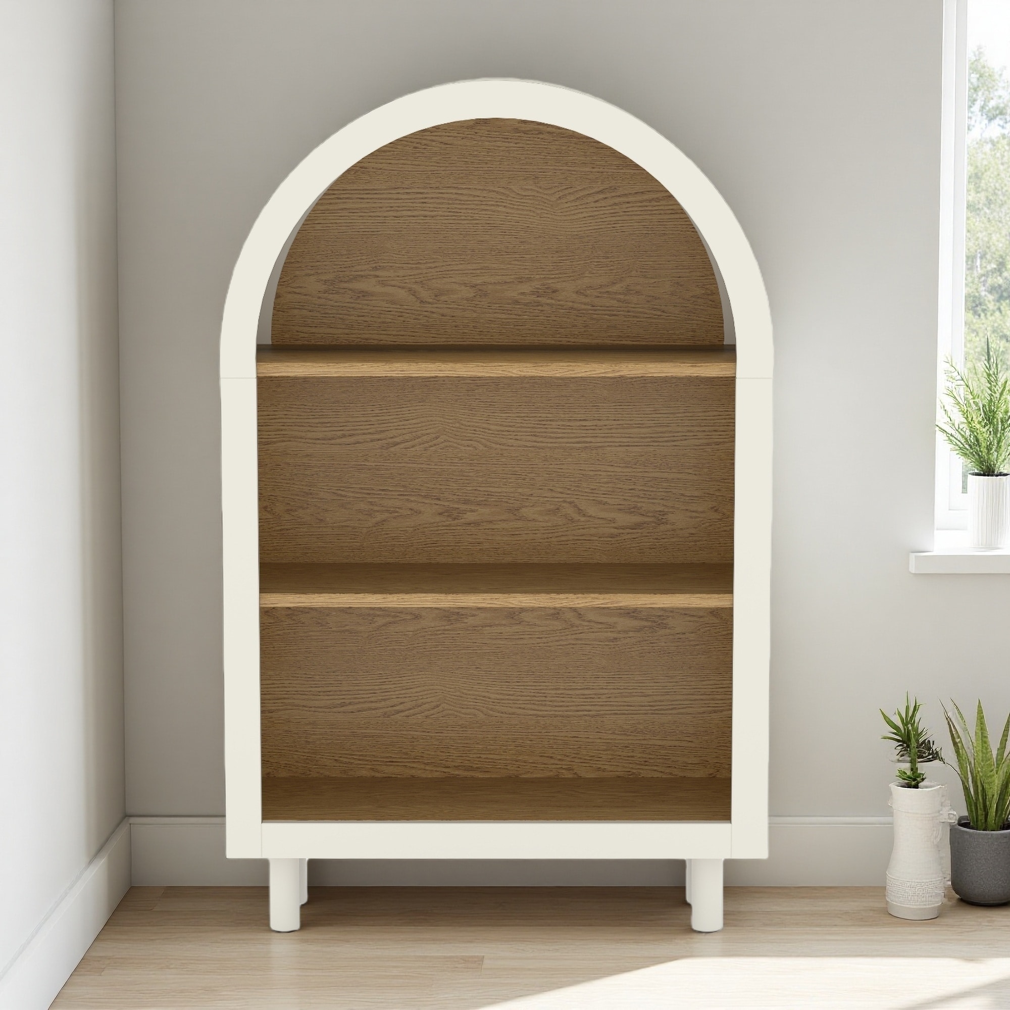 61" Tall Arched Cabinets,Bookcase with storage,Mid-Century Modern 5-Tier Bookshelf with Door,Black
