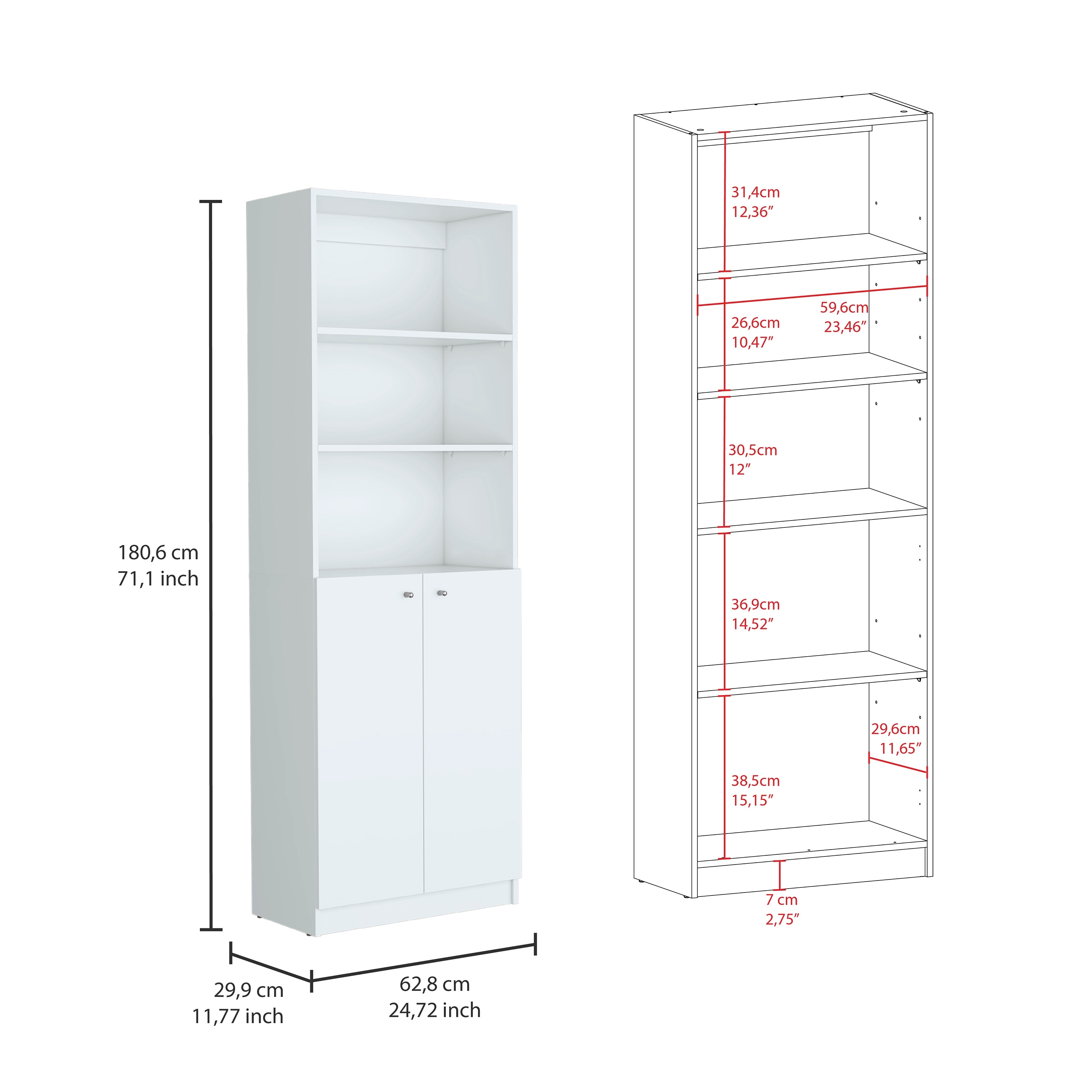 White Bookcase Storage Cabinet: Louvered - Door Bottom Compartments and Adjustable Interior Shelves