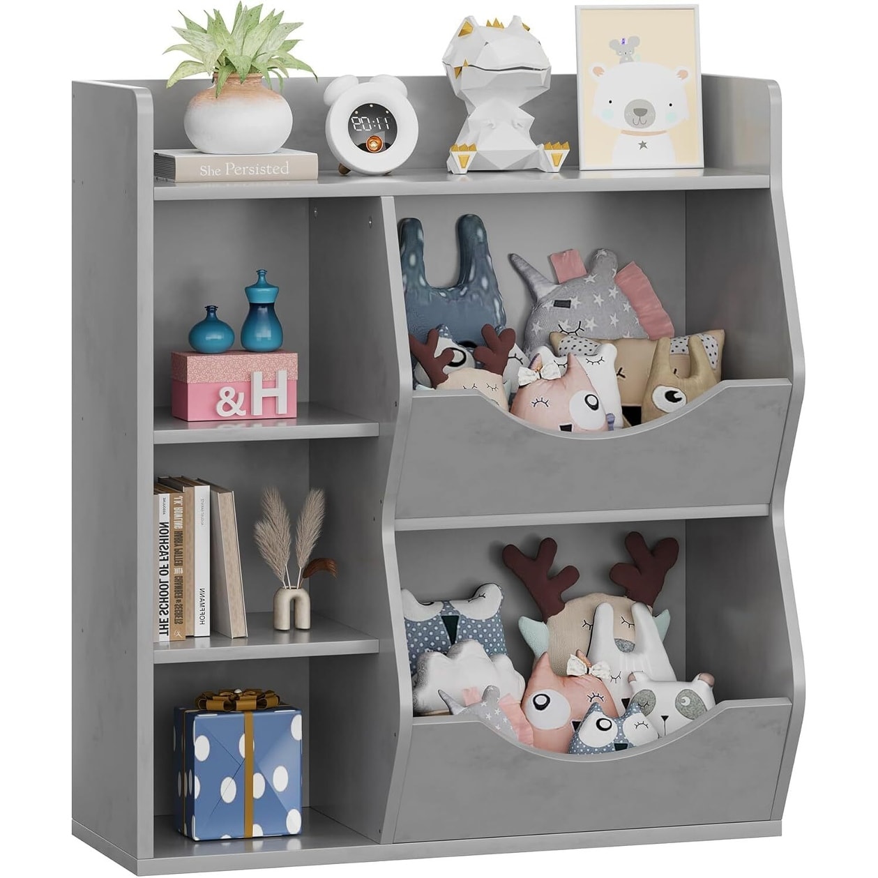 Kids Bookshelf,3-Tier Toy Storage Organizer Double Side White- 5 Cubes Wooden Kids