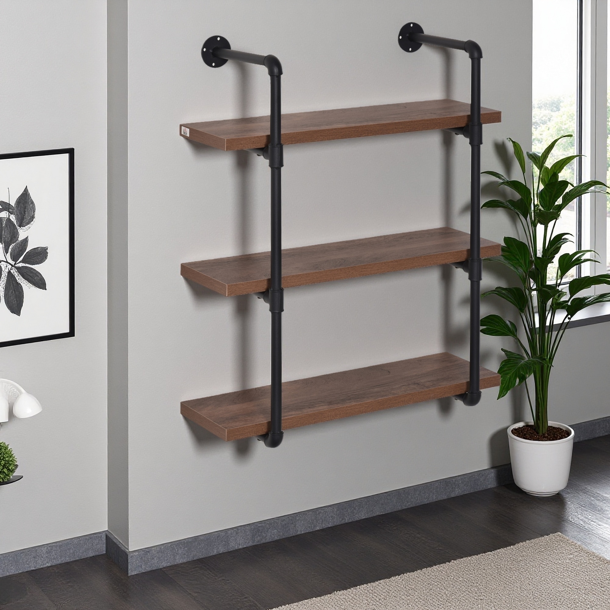 37.5"H Industrial Pipe Shelving, 3-Tier Floating Wall-Mounted Bookshelf with Metal Frame, Display Rack for Living Room, Bedroom