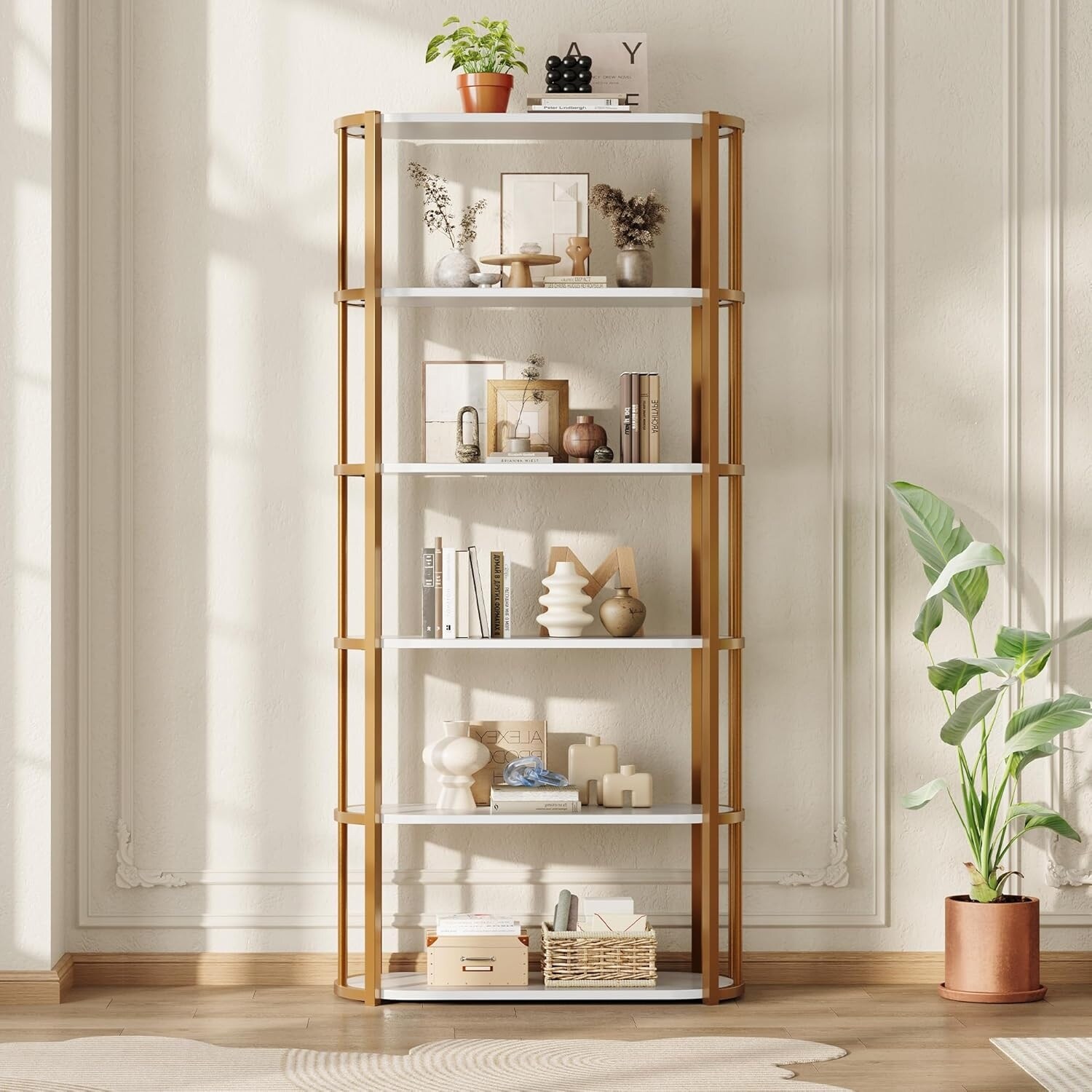 5-Tier Arched Bookshelf, 70.87-Inch Tall Bookcase for Home Office, Living Room - 39.37" W x 11.81" D x 70.87" H