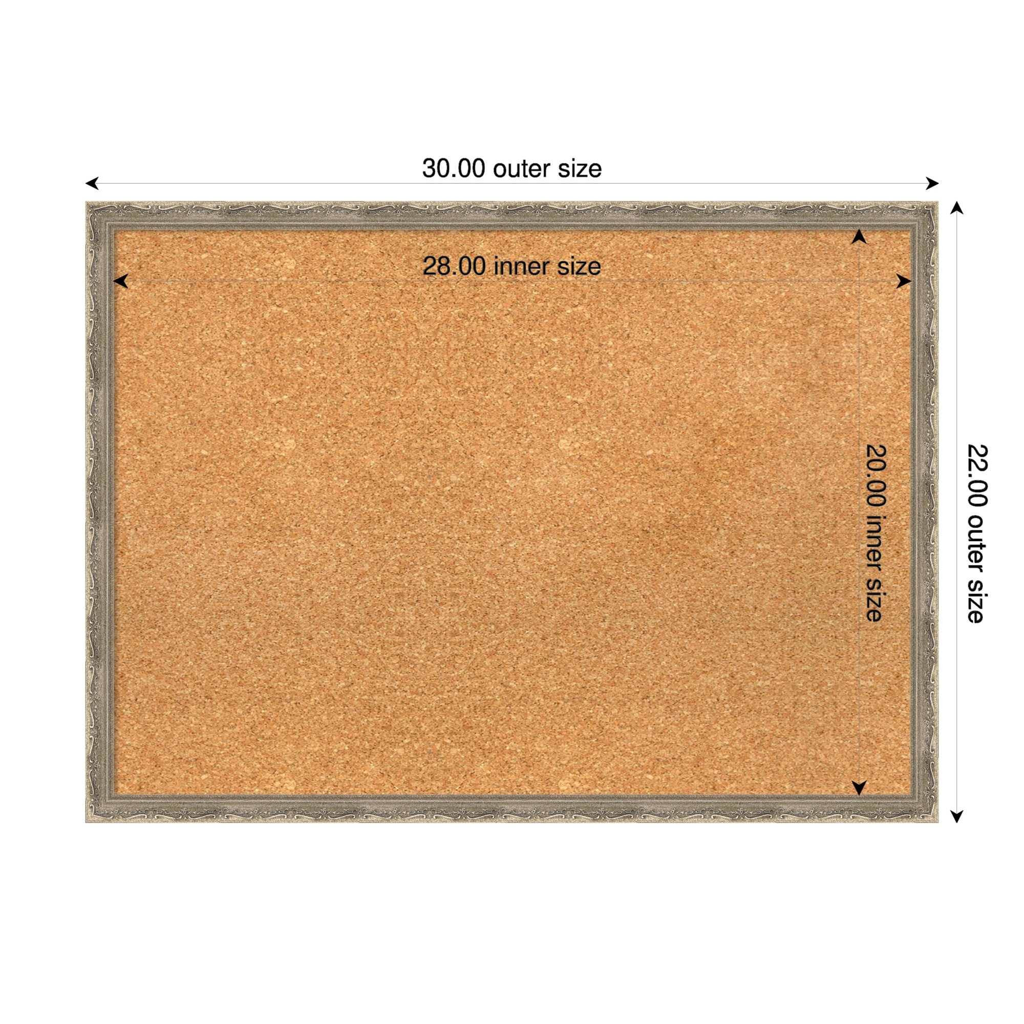 Mila Dark Silver Wood Framed Cork Board - Bulletin Board, Organization Board, Pin Board