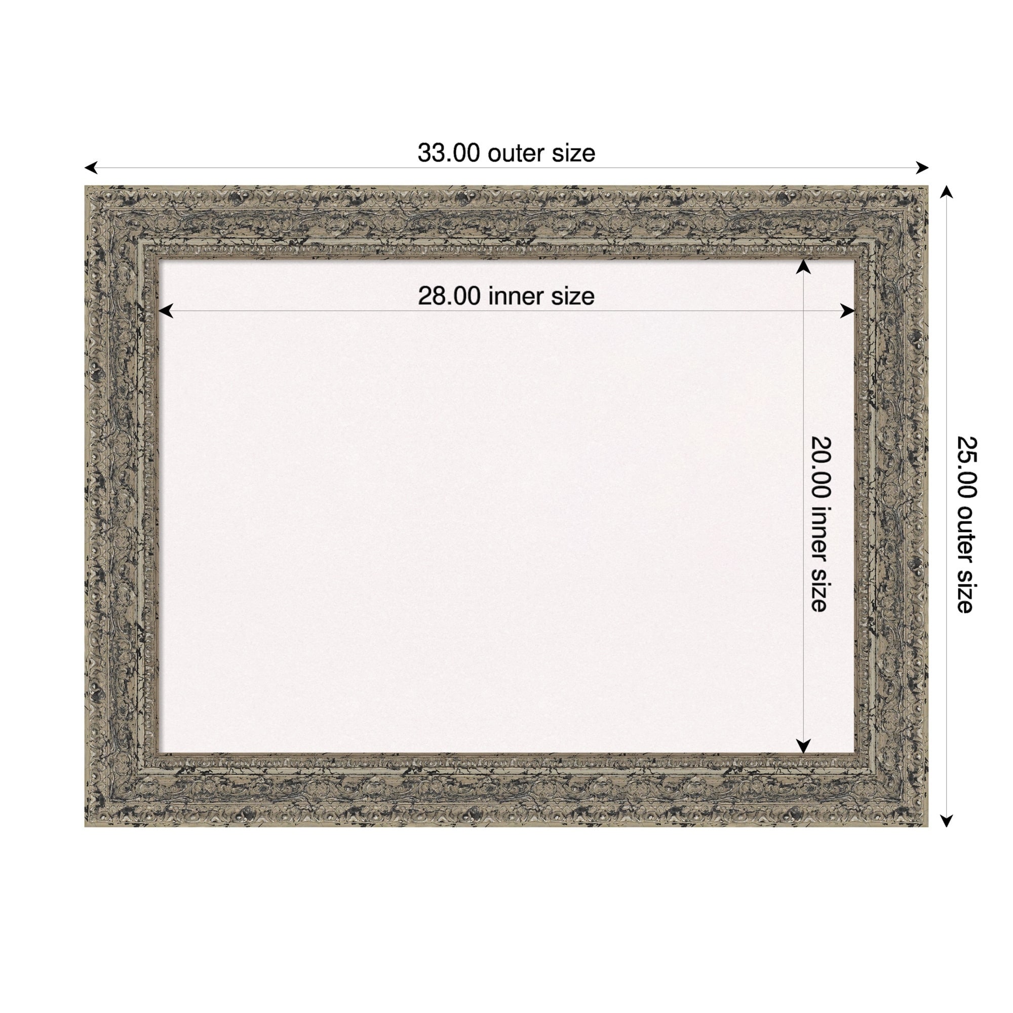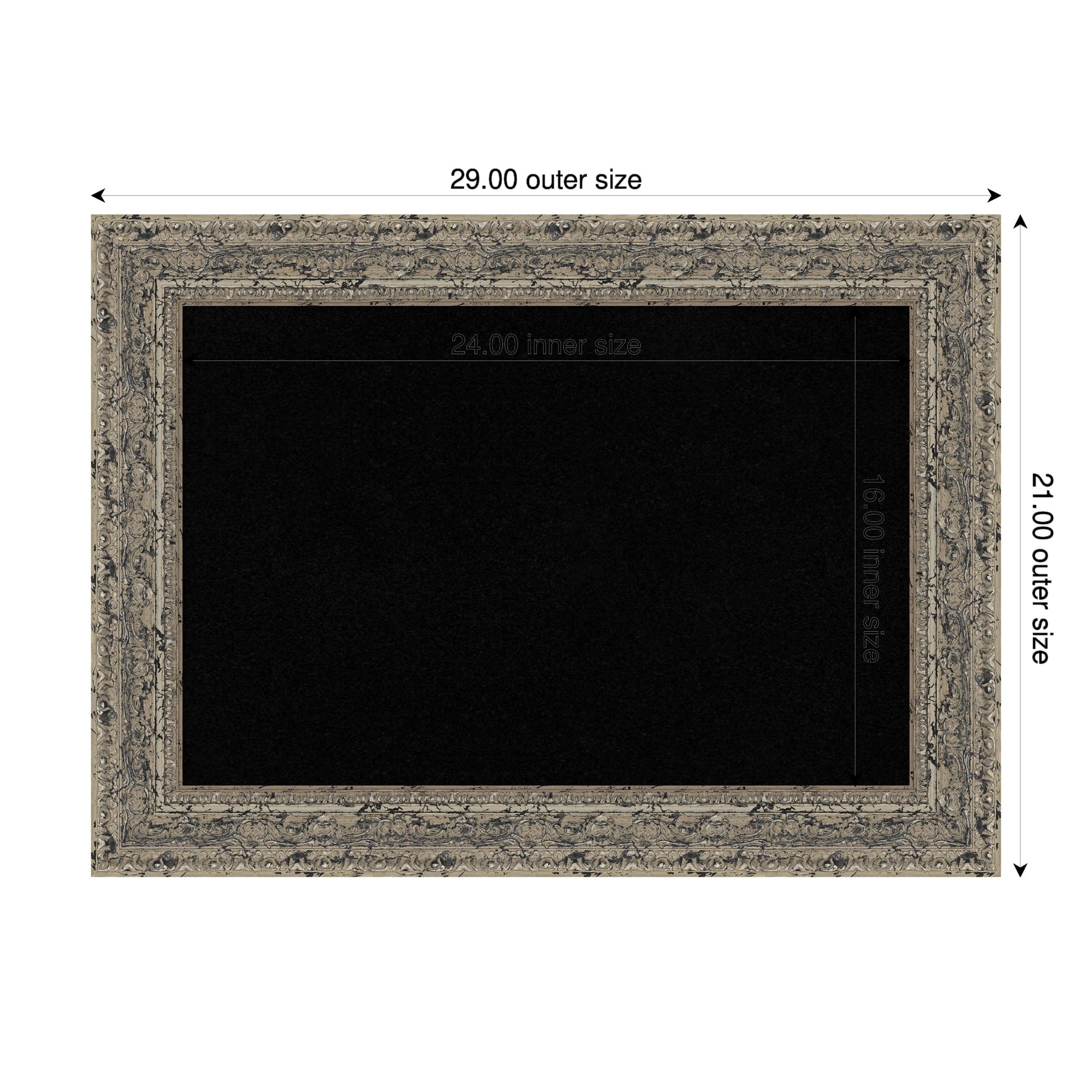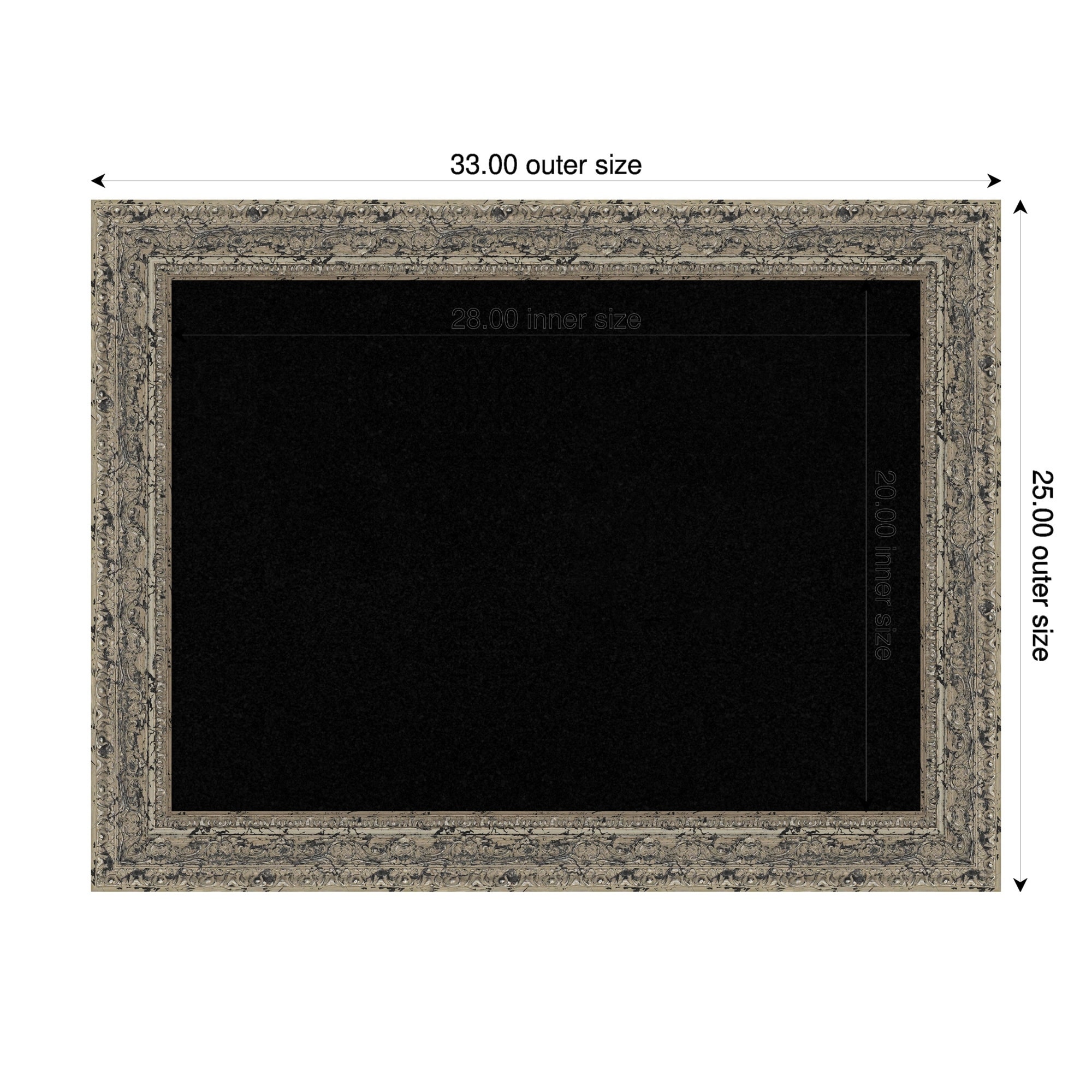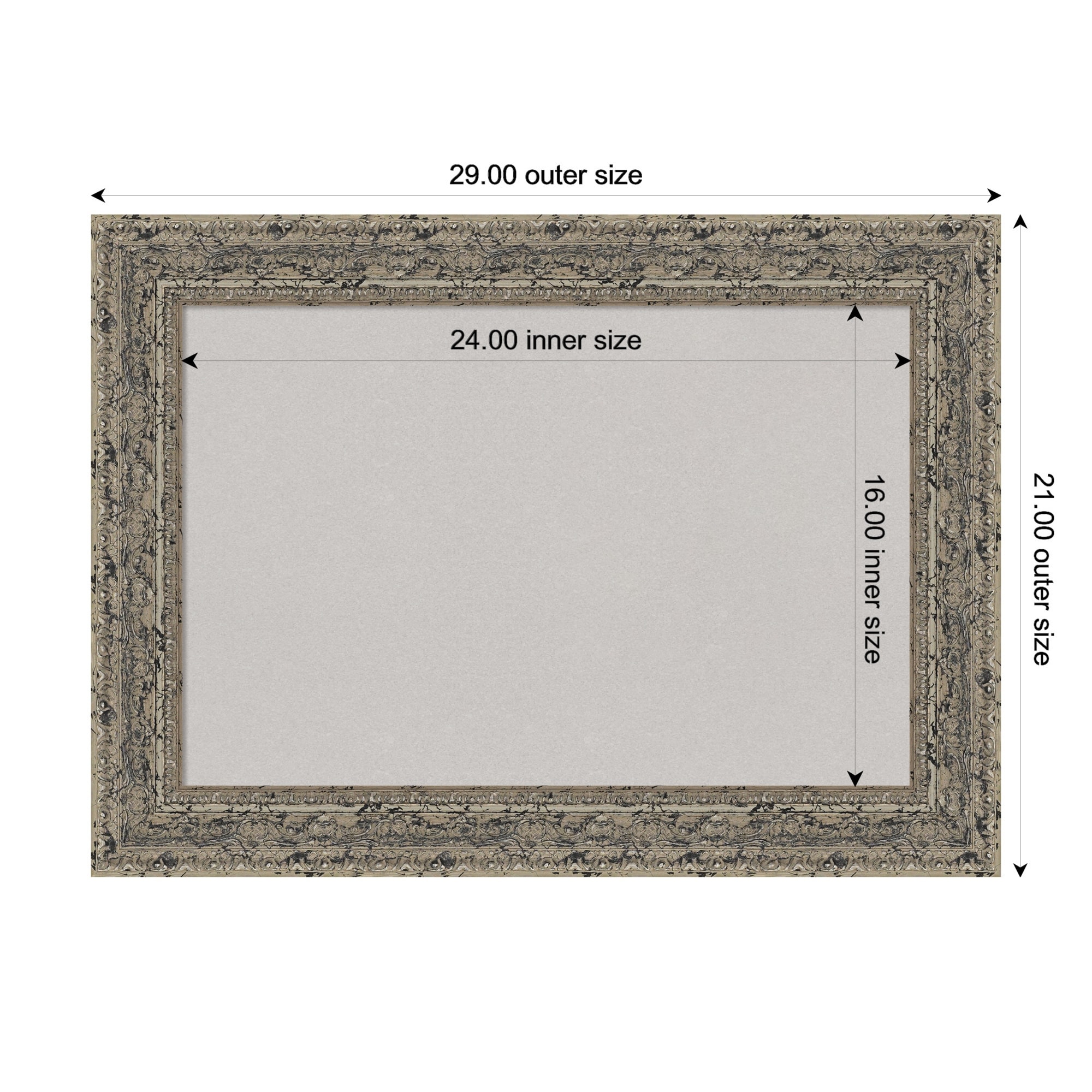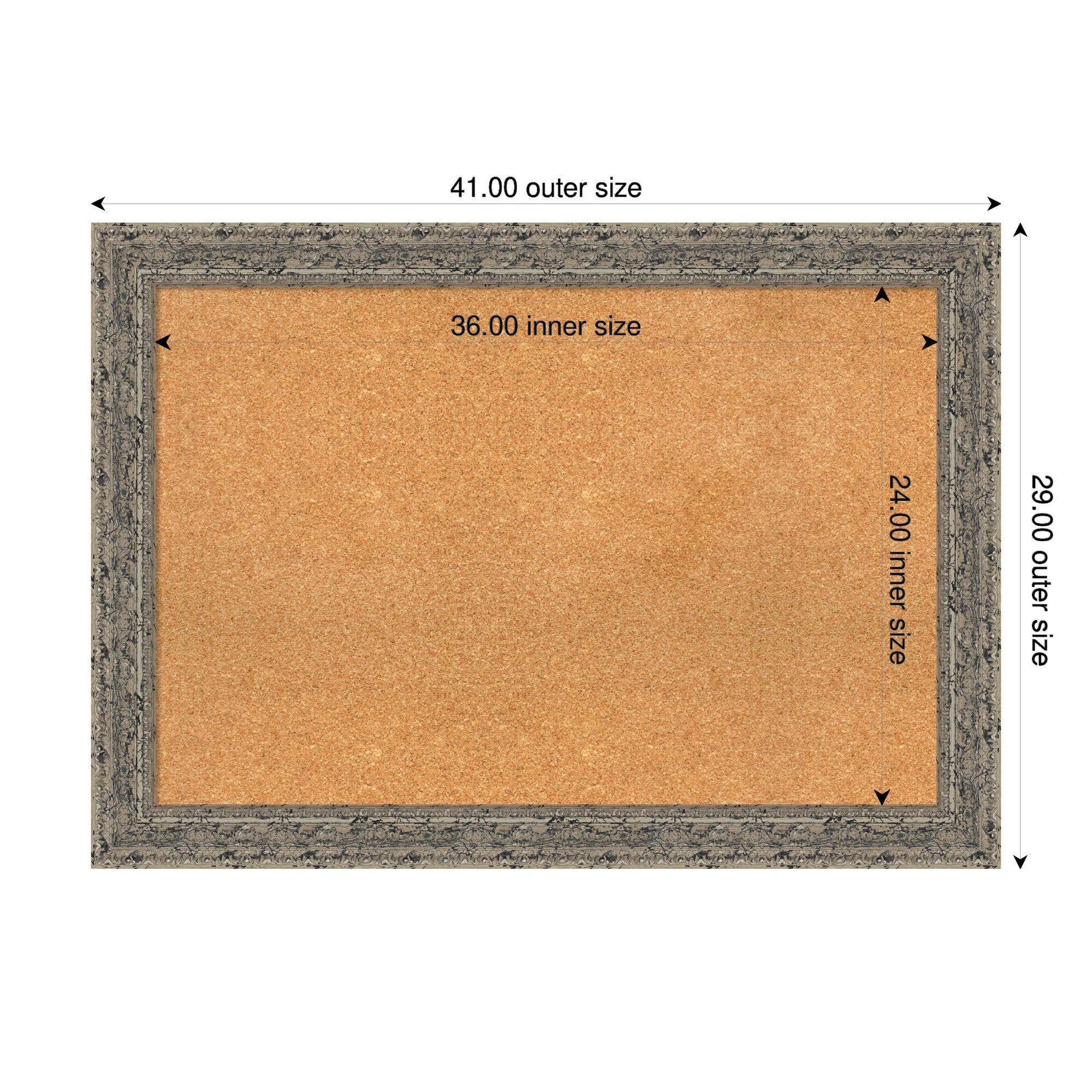 Attic Aged Silver Wood Framed Cork Board - Bulletin Board, Organization Board, Pin Board