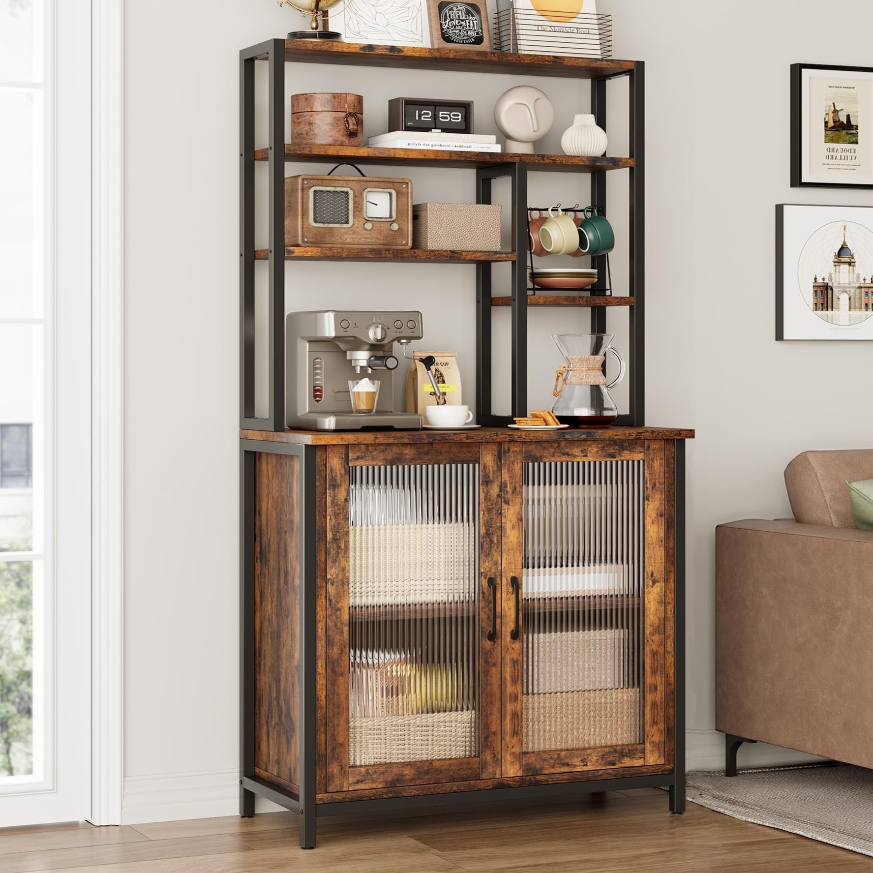 Bakers Rack with Cabinet 64.5" Microwave Stand with Storage - Retro color