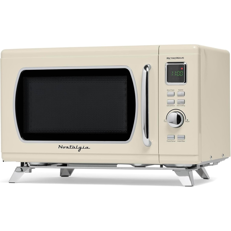 0.9 Cu Ft Vintage-Style Microwave with Cream Finish & Compact Countertop Design
