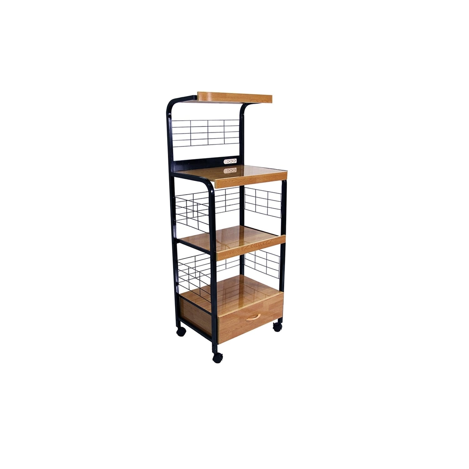 59.5" Tall 4-Tier Microwave Kitchen Cart with Drawer, Open Shelves, Casters, and Built-In Electrical Outlets