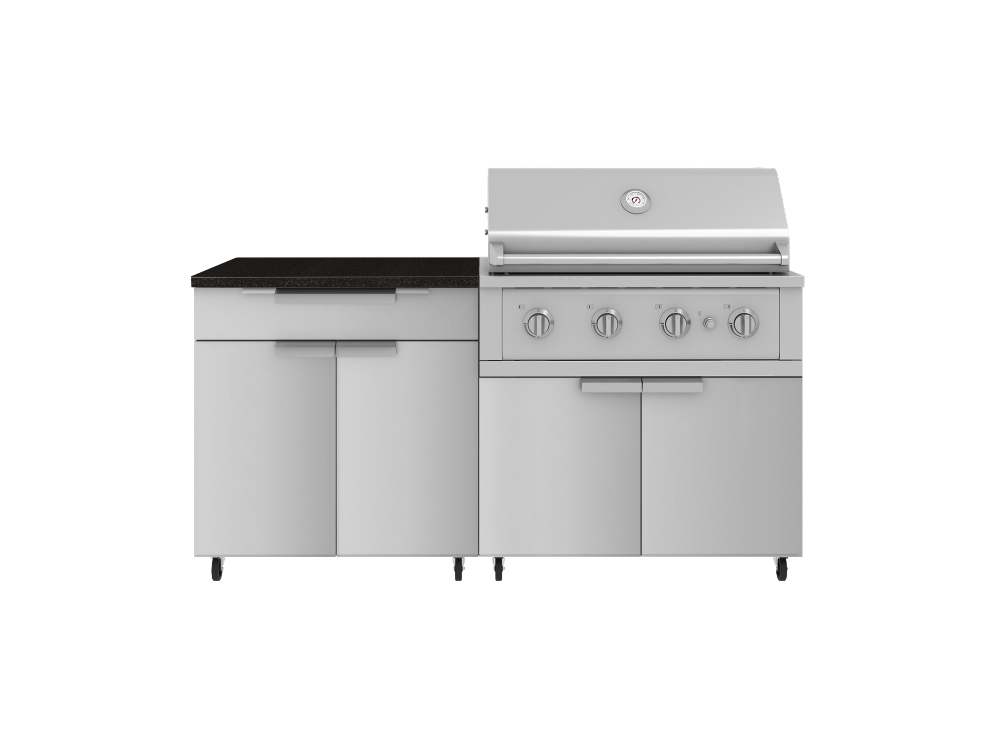 NewAge Outdoor Kitchens Stainless Steel 4-Piece Cabinet Set with Caster and Bar, Grill Cabinet, Platinum Grill, and Countertop