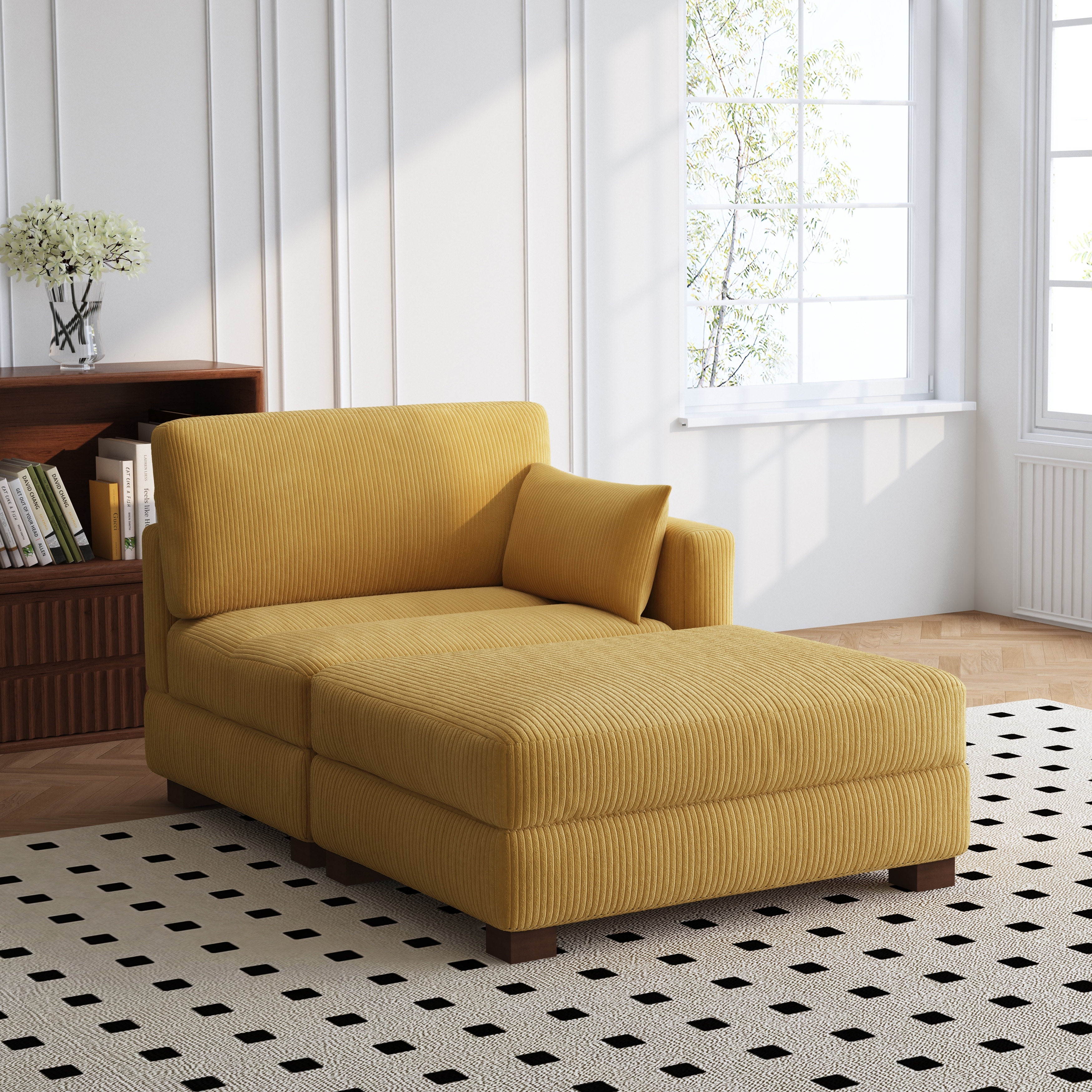 Modern 43'' Corduroy Comfy Sectional Chaise Lounge with Pillow