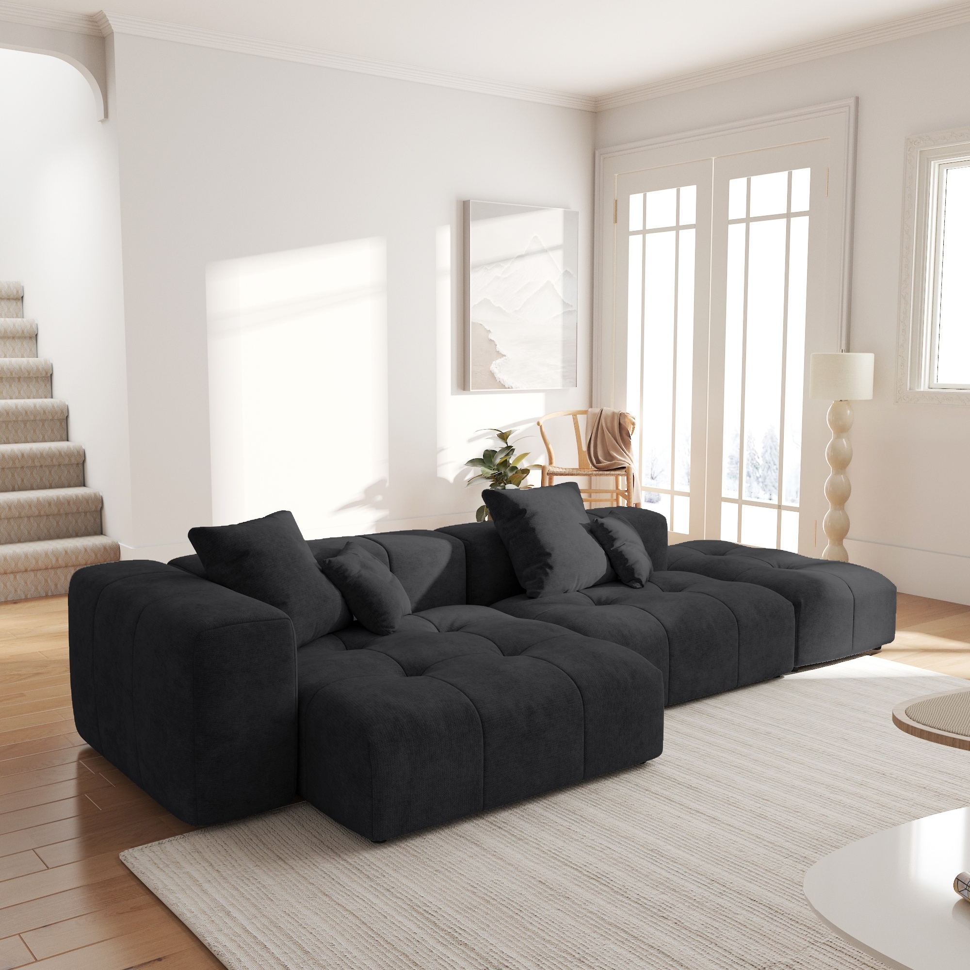 119.27" Linen Modular Sofa Chaise Sectional Sofa with Pillows, Ottoman
