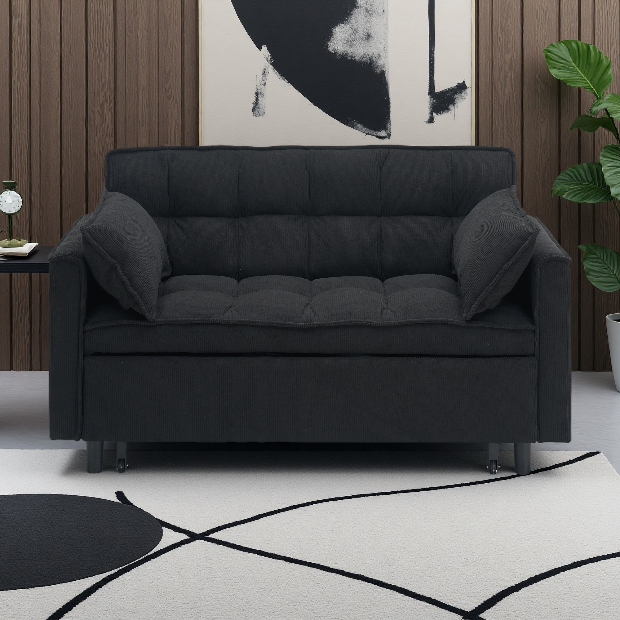 54.3" Modern Corduroy Sofa Bed ,2-in-1 Convertible Design with Wooden Bracket Frame for Small Spaces