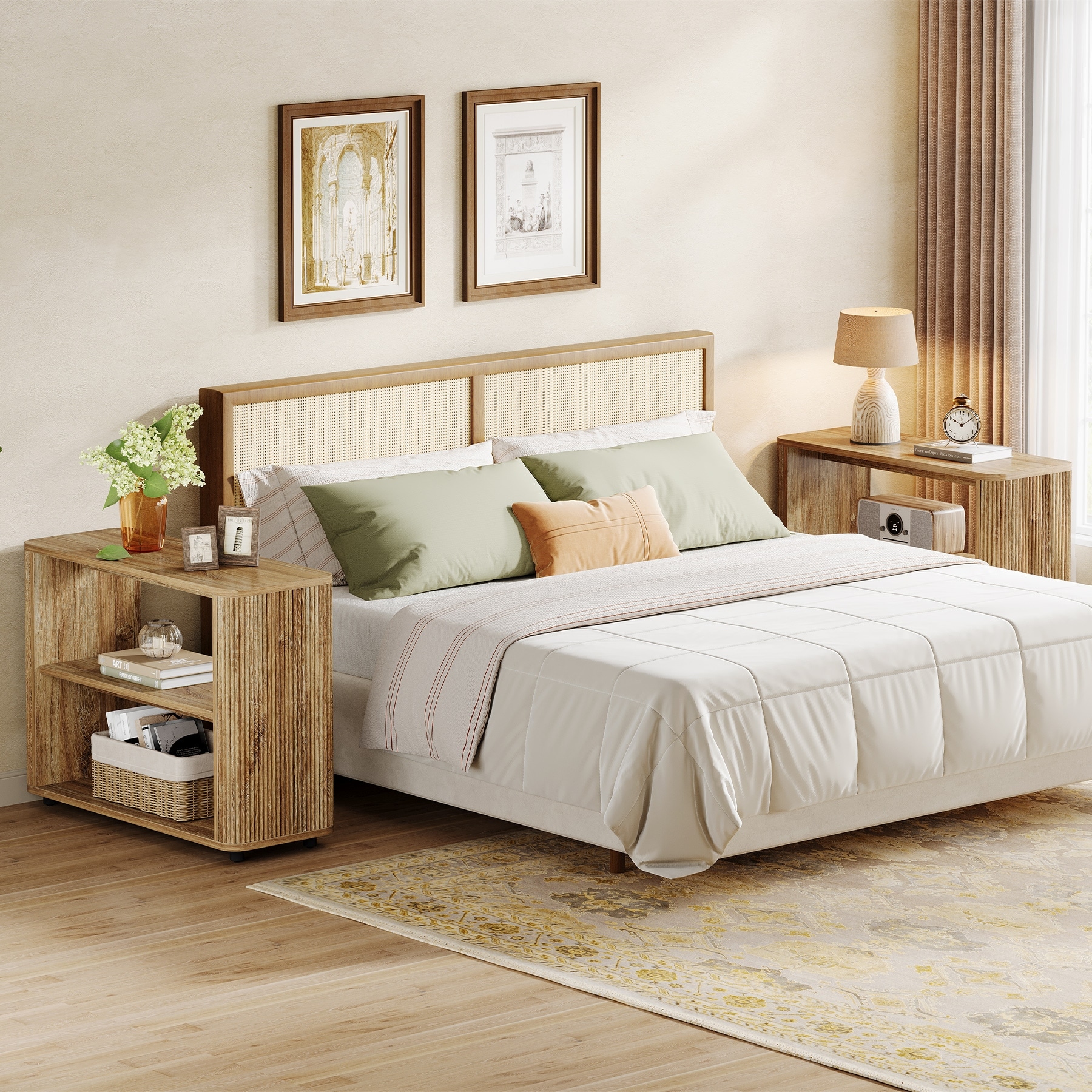 3-Tier Small Side Table Bedside Table, Farmhouse Fluted Nightstand for Bedroom