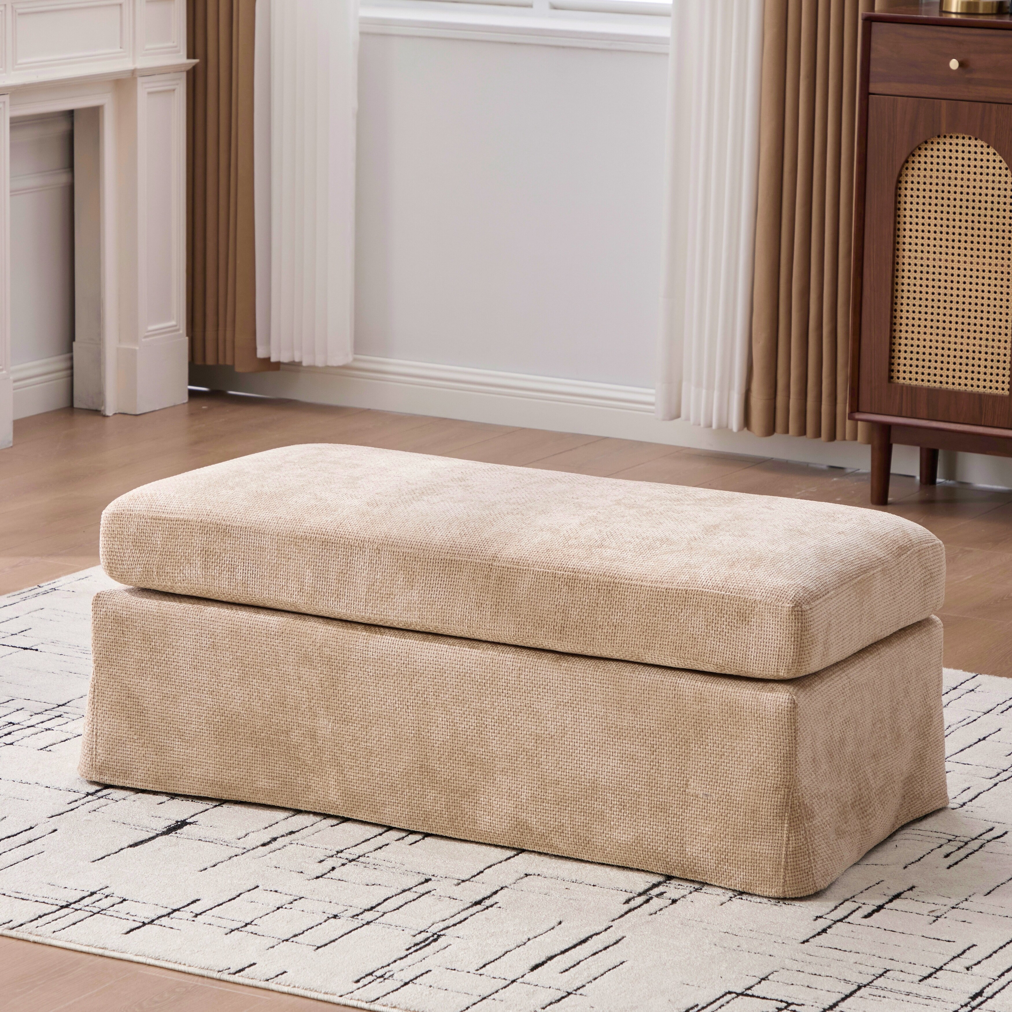 46"W Modern Upholstered Chenille Ottoman,Bench With Metal Legs