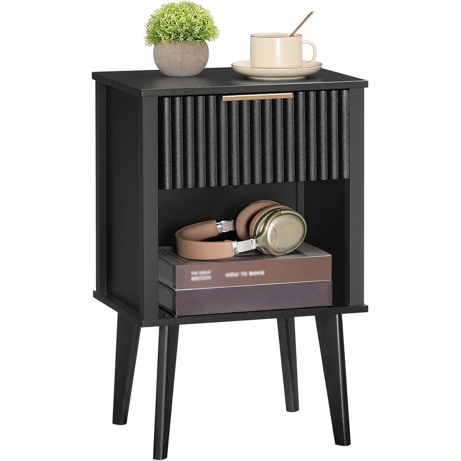 Modern Side Table with Drawer, Mid Century Nightstand for Bedroom, Living Room, Black