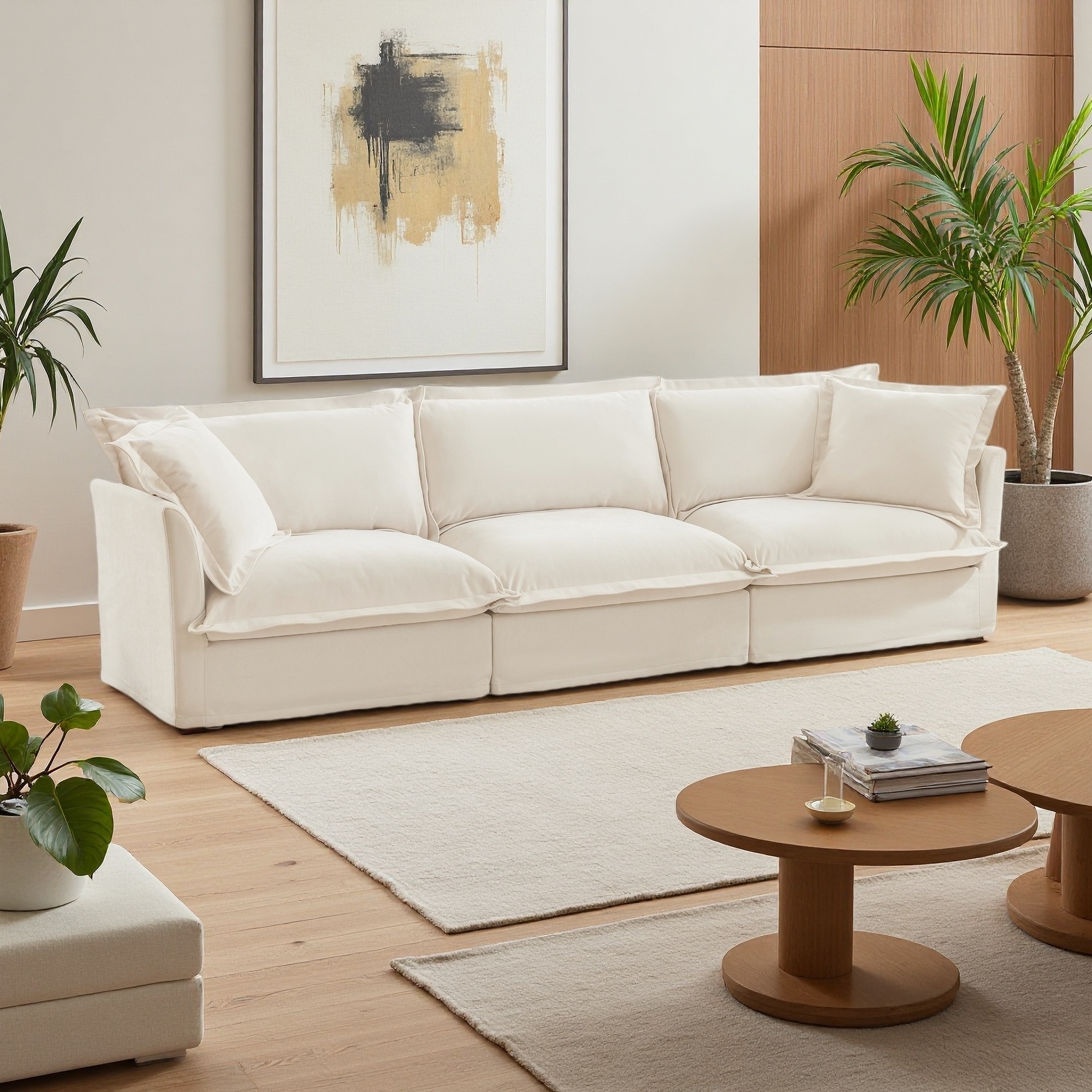 Modern Chenille Cloud Sofa,3-Seater with Plush Pillows and Modular Sectional Design