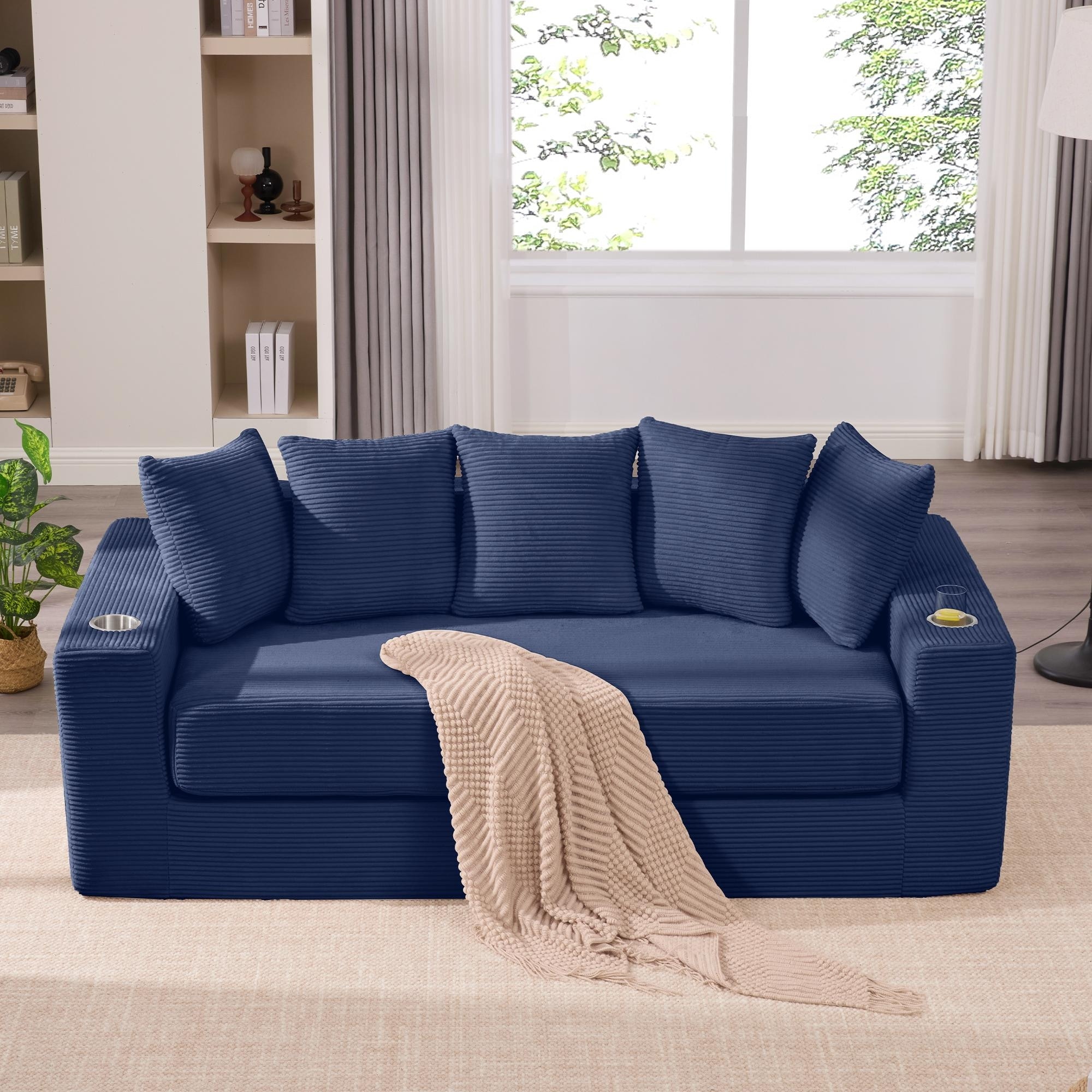 2-in-1 Convertible Sleeper Couch with Pillows and Cup Holders