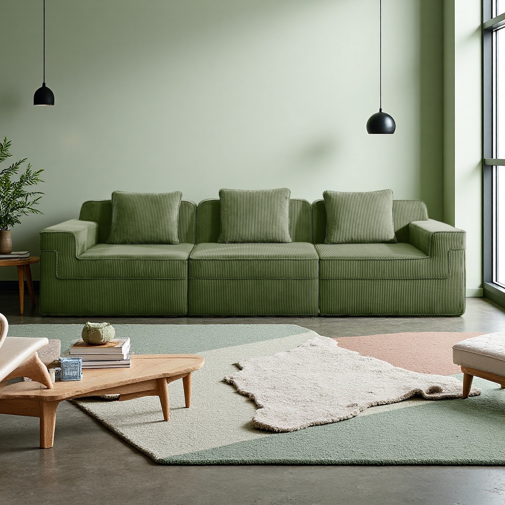 117.3" Modular 3-Seat Boneless Sofa, Cloud Sectional Couch with Plush Corduroy Fabric, Deep Seat, Removable Throw Pillows