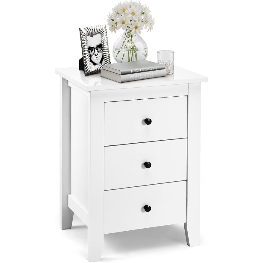 Modern Nightstand with 3 Drawers, Sturdy Side Table for Bedroom and Living Room