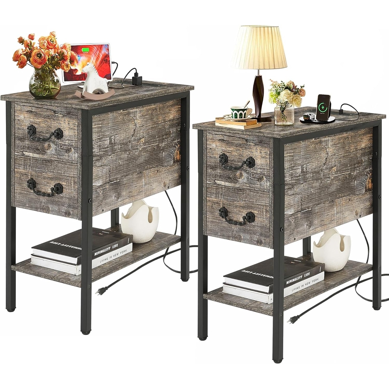 Modern Nightstand with Charging Station, USB Ports, and Drawers for Bedroom or Living Room