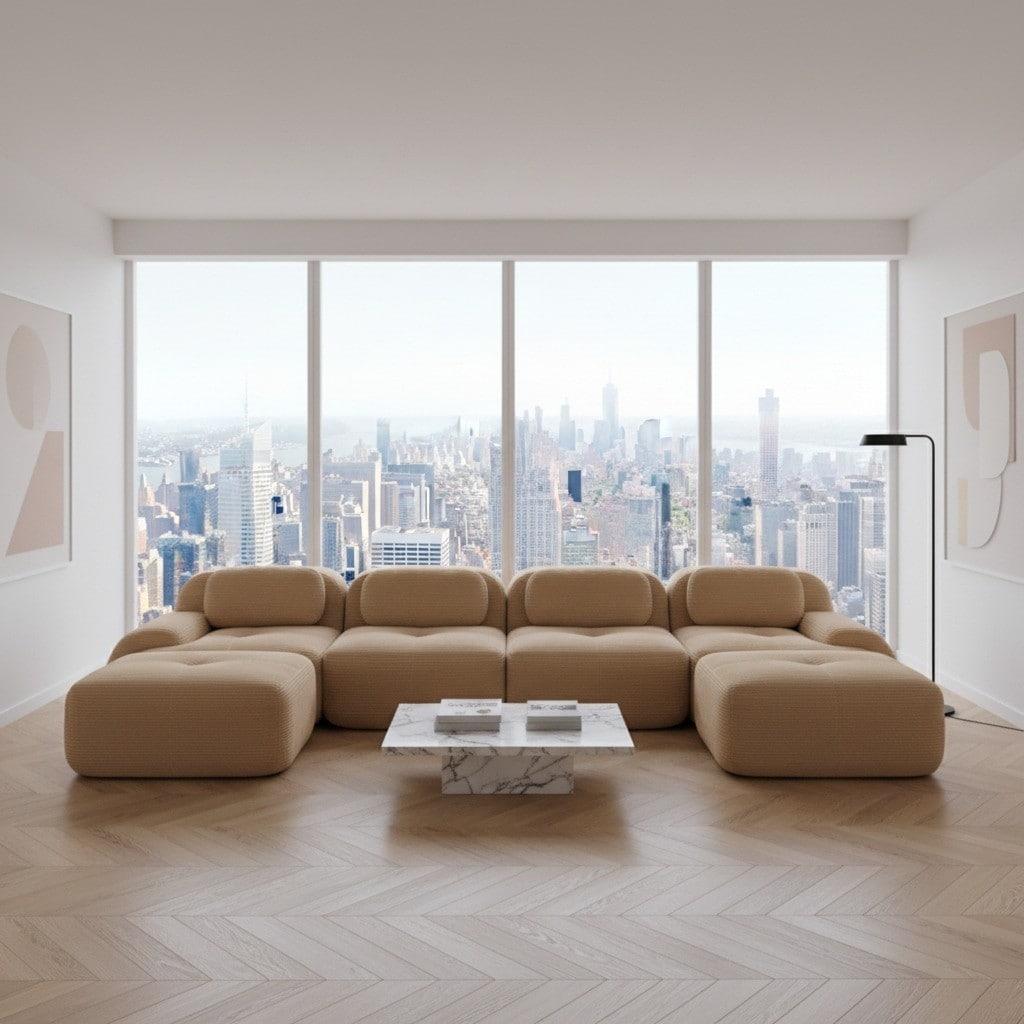 Homy Casa SMZO 152.7 in. Modular Corduroy Sectional Sofa with Ergonomic Curved Armrests, Adjustable Backrest