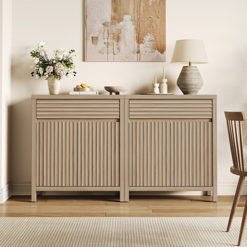 58"W Modern Fluted Credenza Console Cabinet with Adjustable Shelves