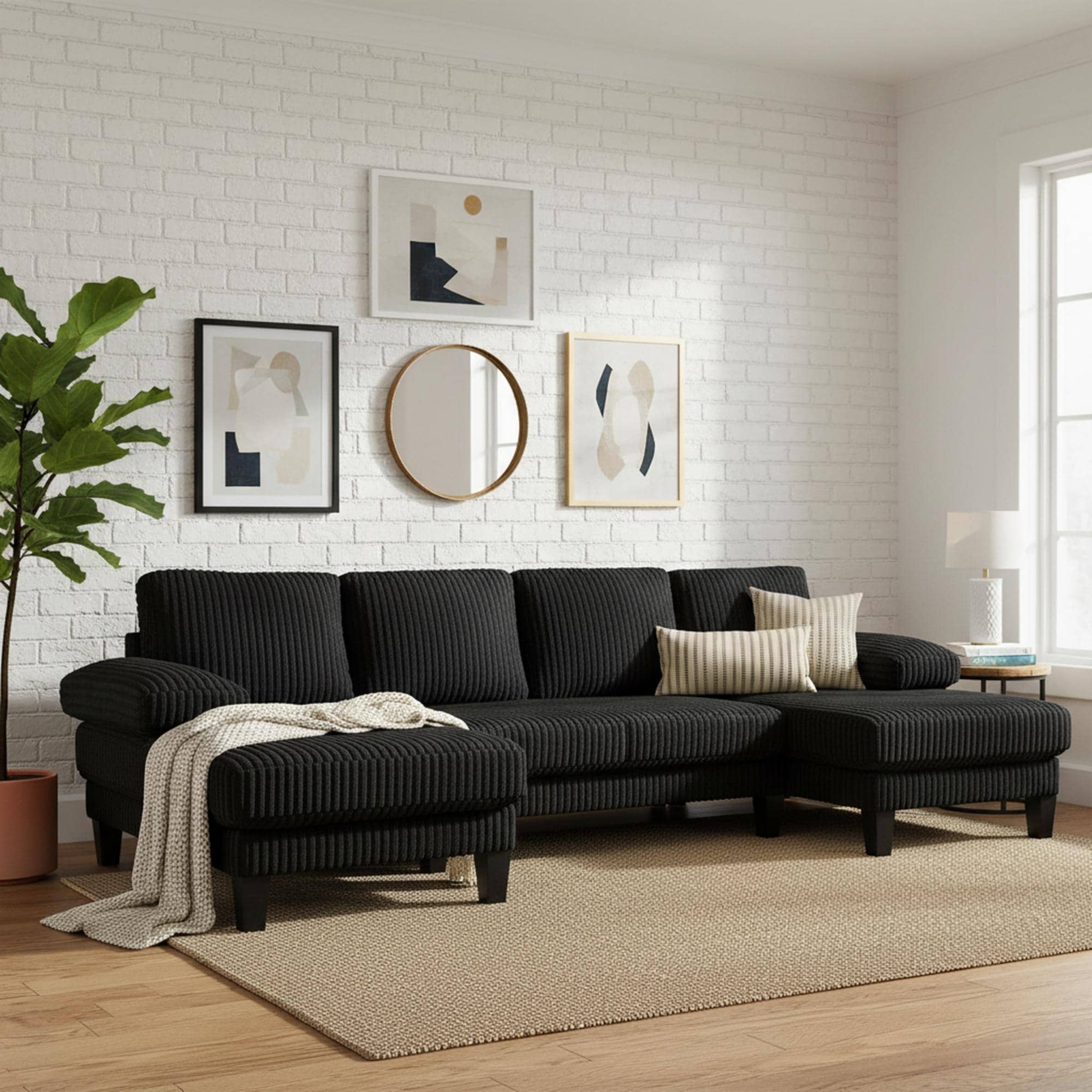 Modern U Shaped Modular Sofa with Arched Armrests and Ottoman Storage for Living Rooms or Guest Room