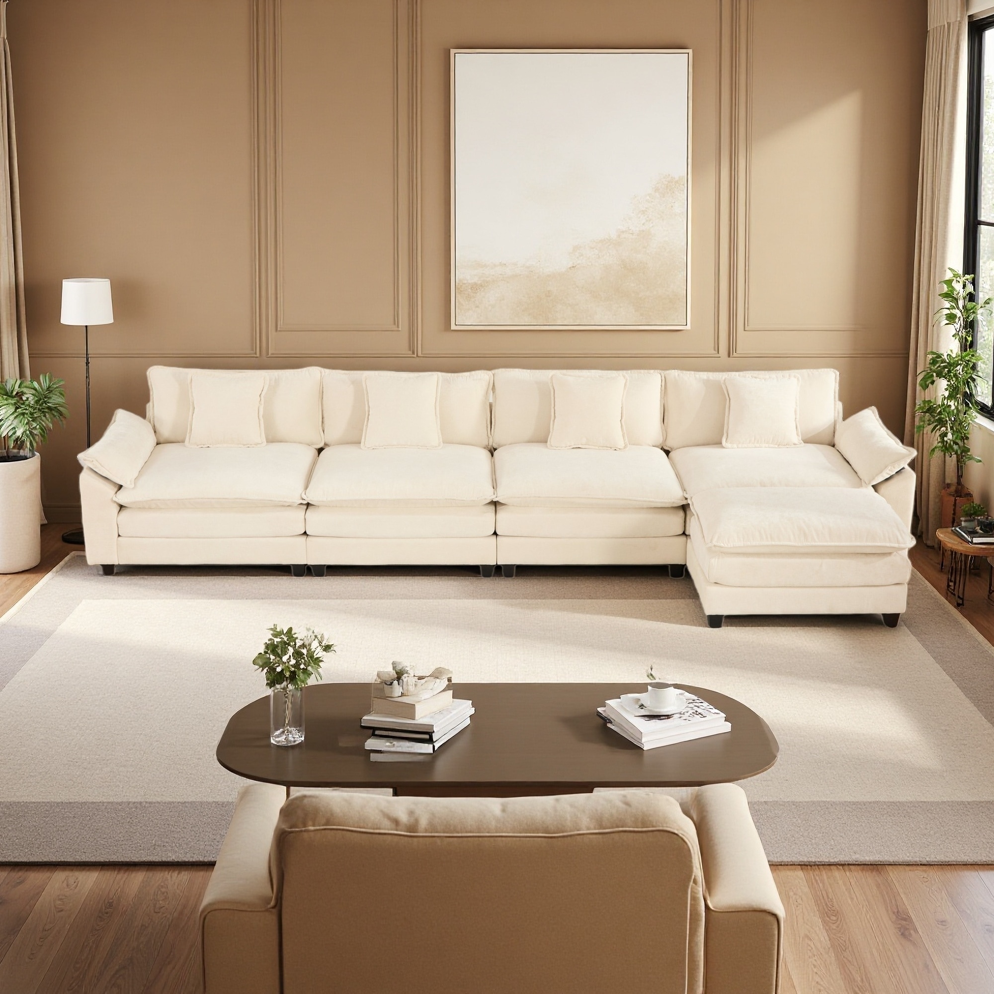 152.8" Chenille Modern Sectional Sofa with Wider Armrests and Double Layer Cushion (4-Seater)
