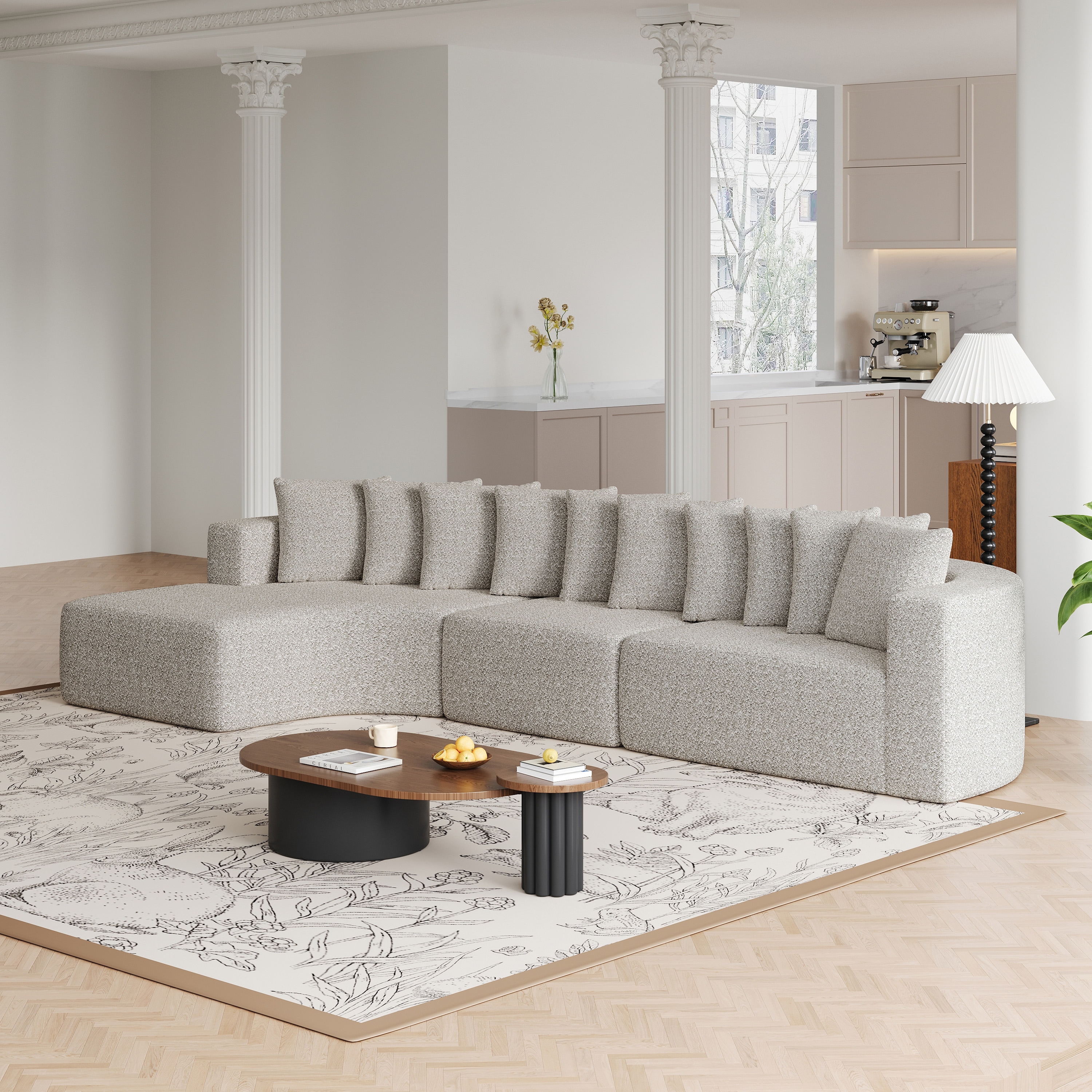 Chenille Sectional Sofa Cloud-Shape Curved Sleeper Sofa with 10 Pillows, Living Room Corner Recliner Sofa, L-Shaped Modular Sofa
