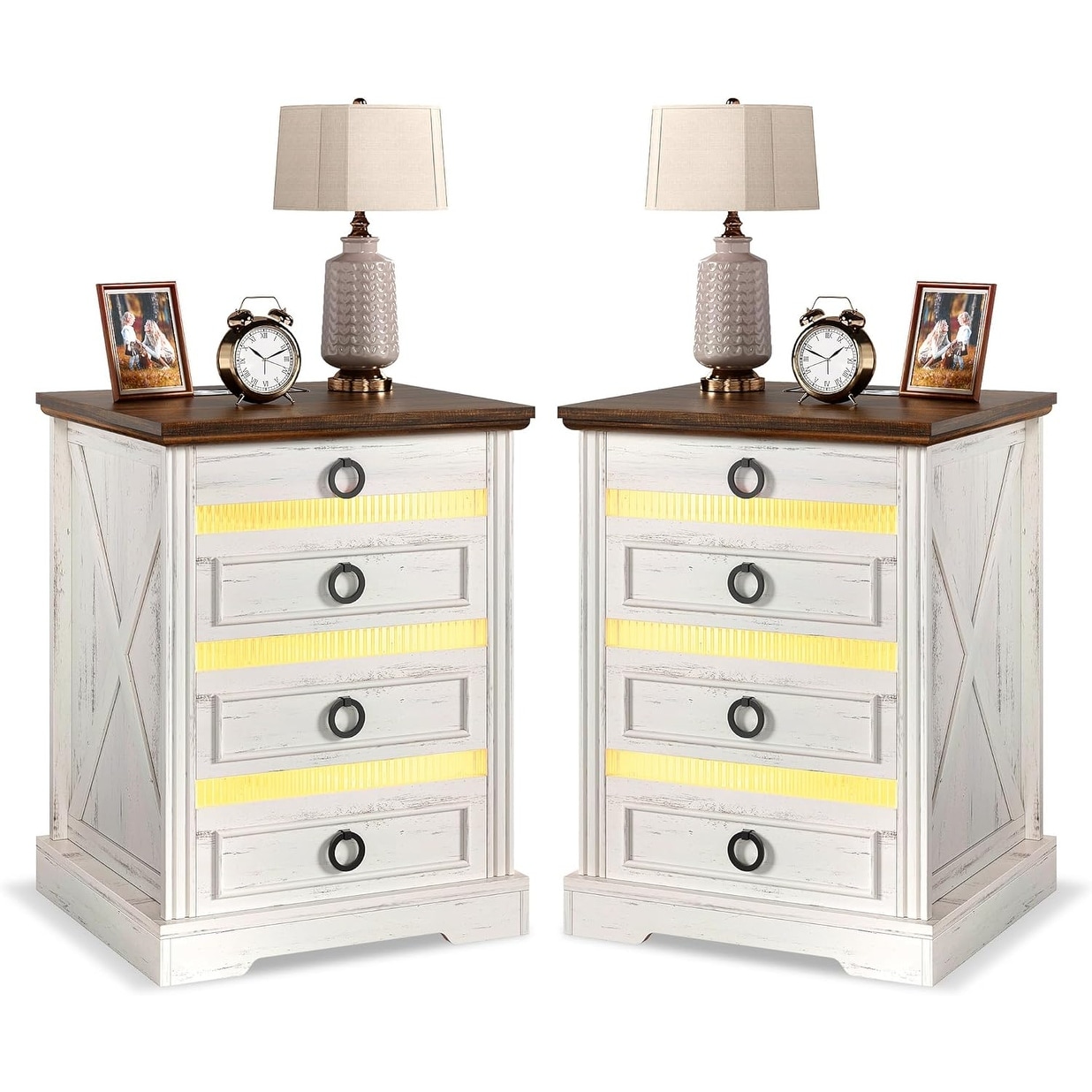 Modern Nightstand with Hidden Drawer, Charging Station, and Motion Sensor Light, Farmhouse Style
