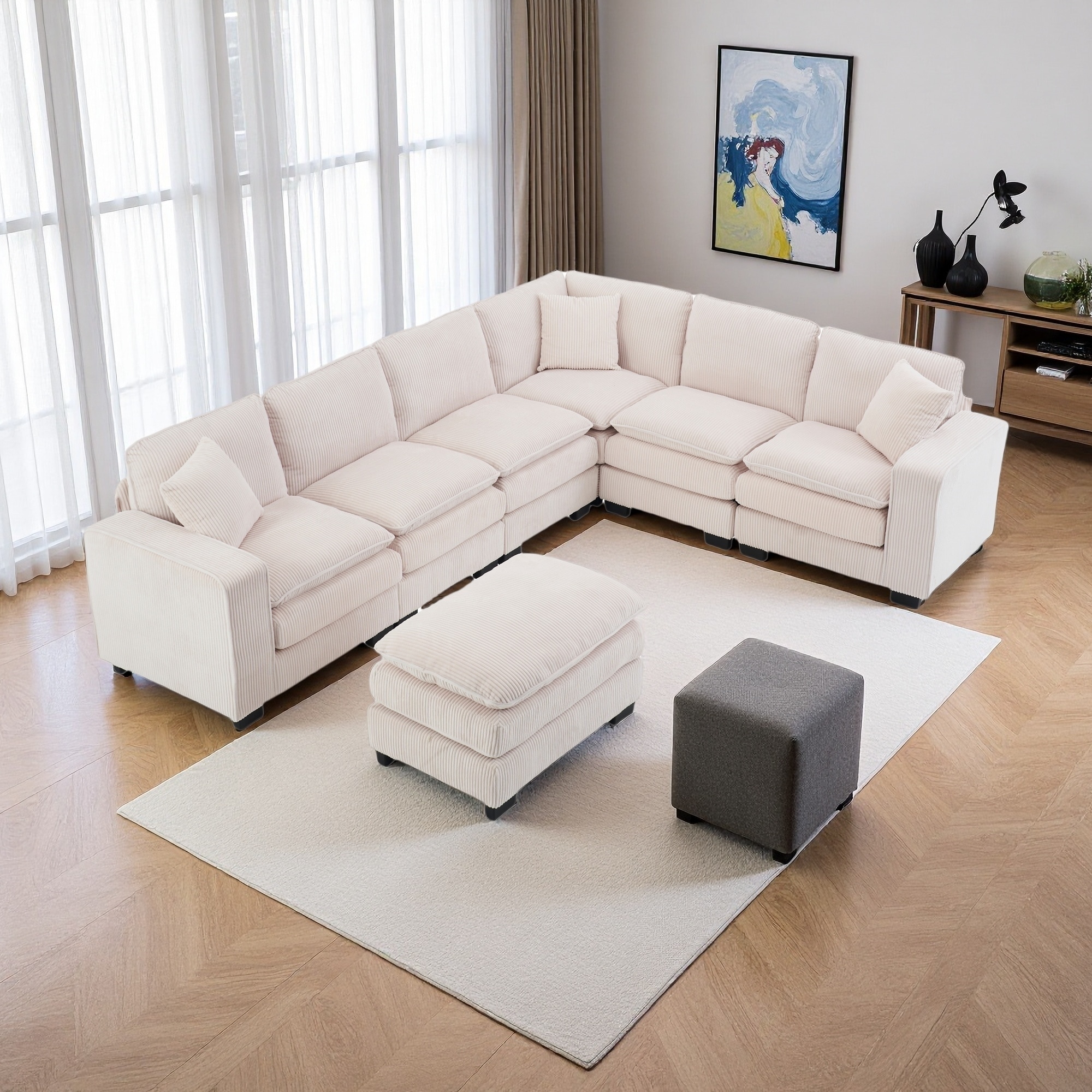 Oversized Modular Sectional Couch Deep Seat Lounge Sofa Corduroy Sleeper Loveseat Couches Floor Accent Couches, Optional Ottoman