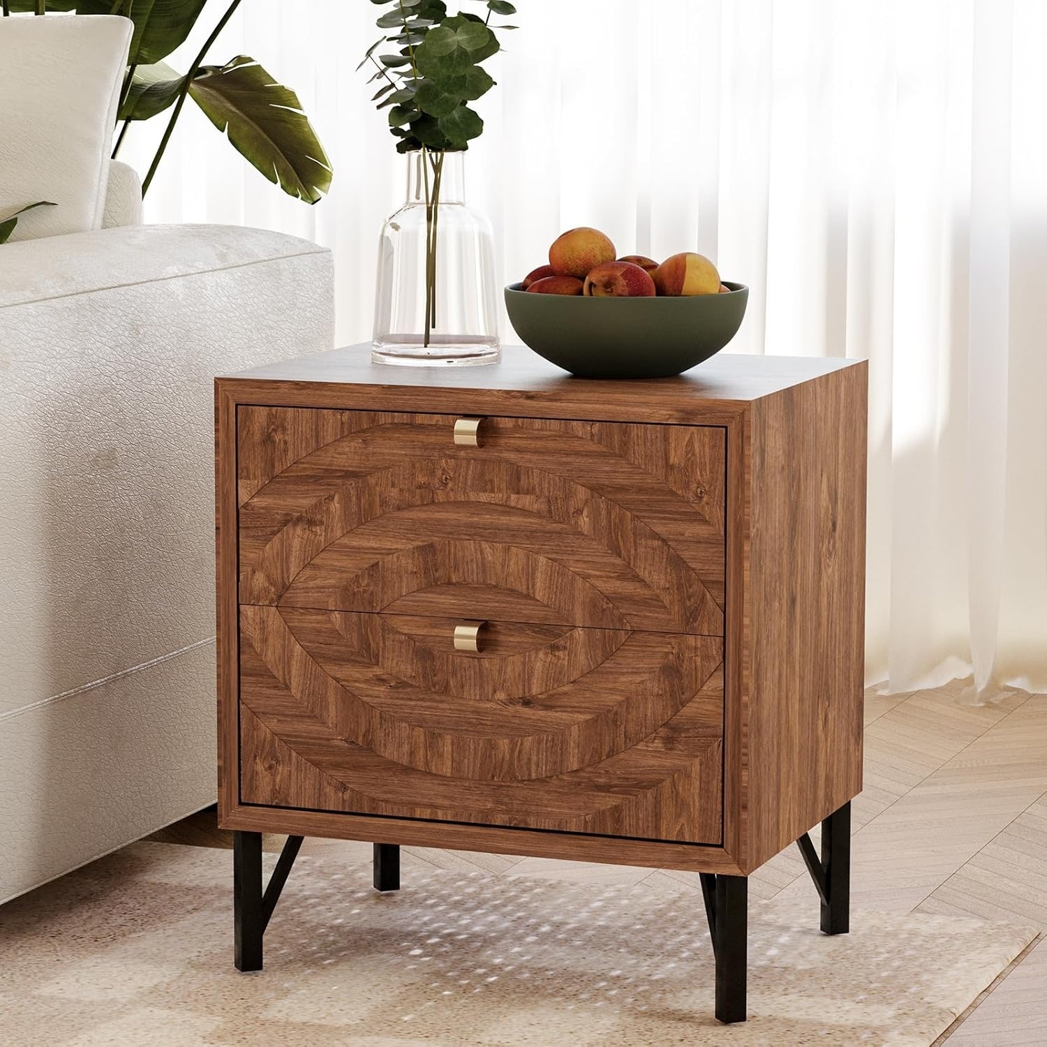 Modern Wood Nightstand with 2 Drawers, Solid Wood Legs, Storage End Table for Bedroom, Living Room, Brown