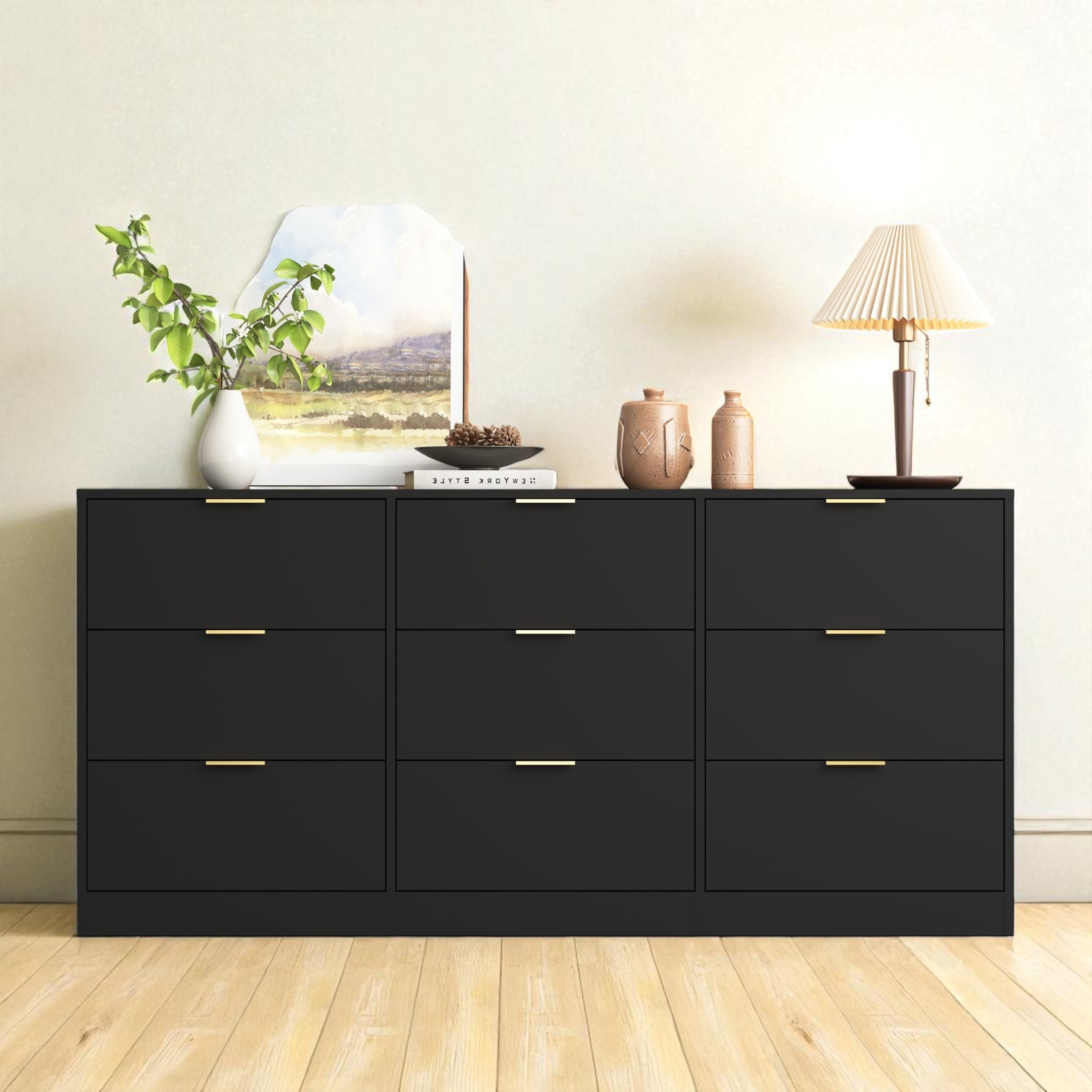 63" Wide 9-Drawer Wooden Dresser, Large Storage Chest of Drawers with Gold Handles for Bedroom, Living Room, Hallway.