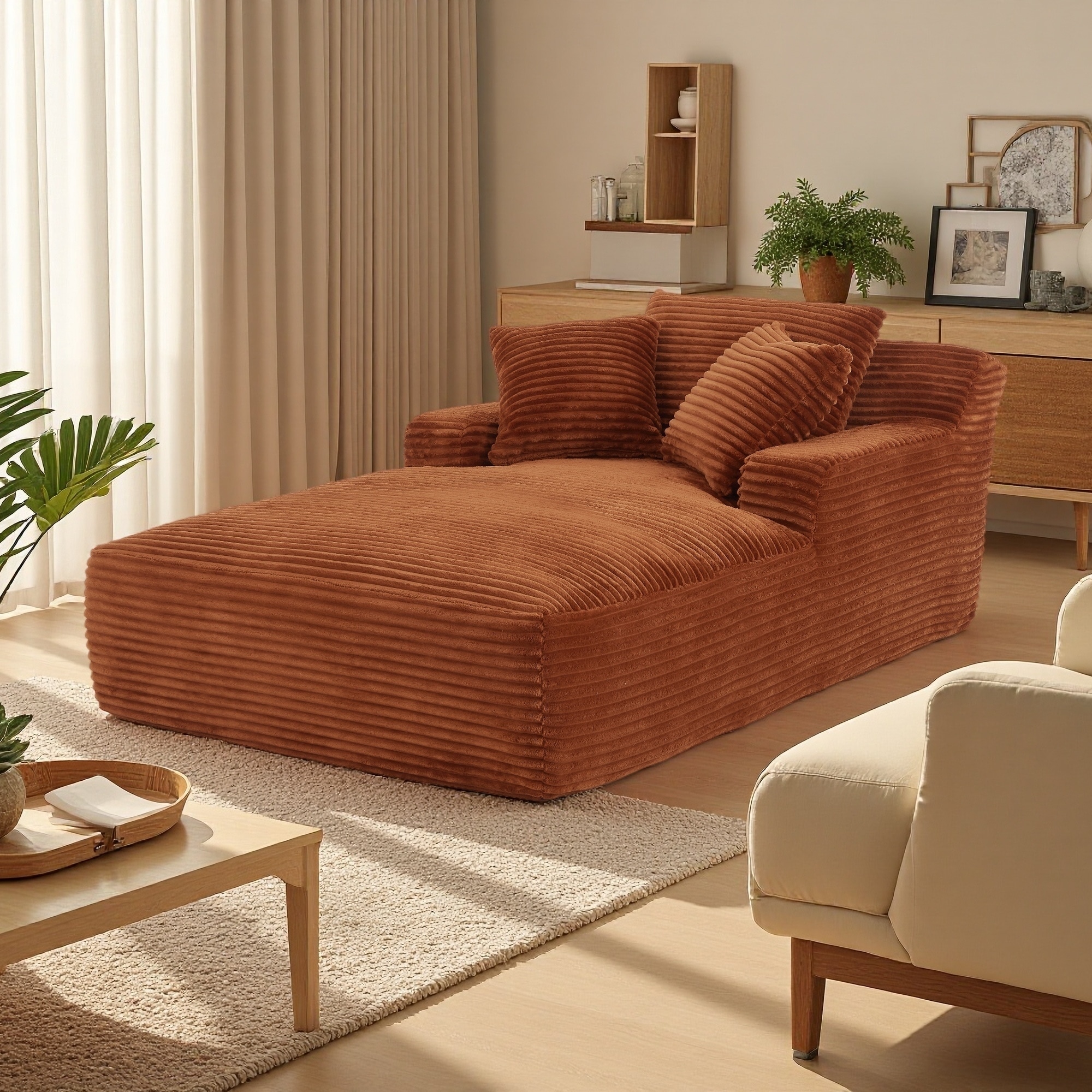49.2" Oversized Chaise Lounge Chair, Corduroy Upholstered, Spring Cushion, No Assembly Required, Comfy Sleeper for Living Room