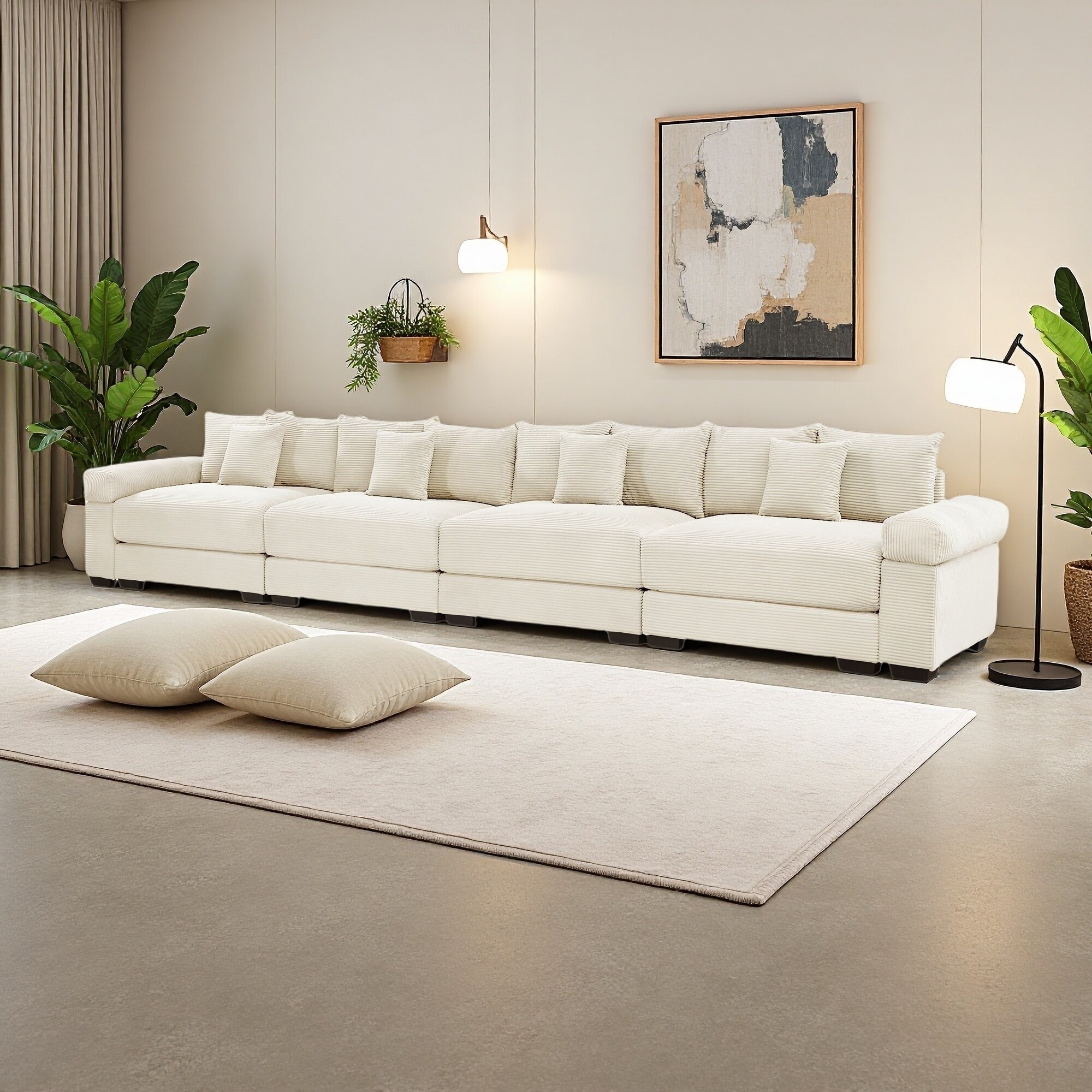 170" Corduroy Cloud Modular 4-Seater Sectional Sofa with 12 Pillows