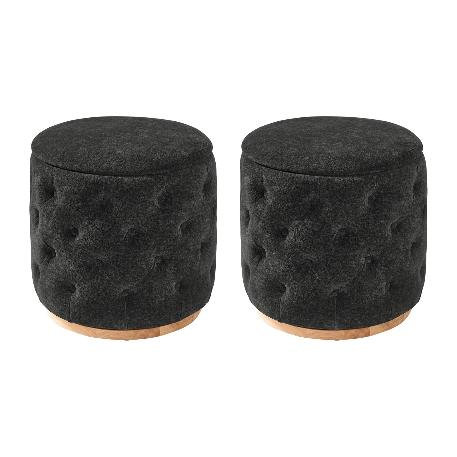 Venus Modern 19"W Tufted Ottoman with Storage and 360-degree Swivel Solid Wood Base Set of 2 by HULALA HOME