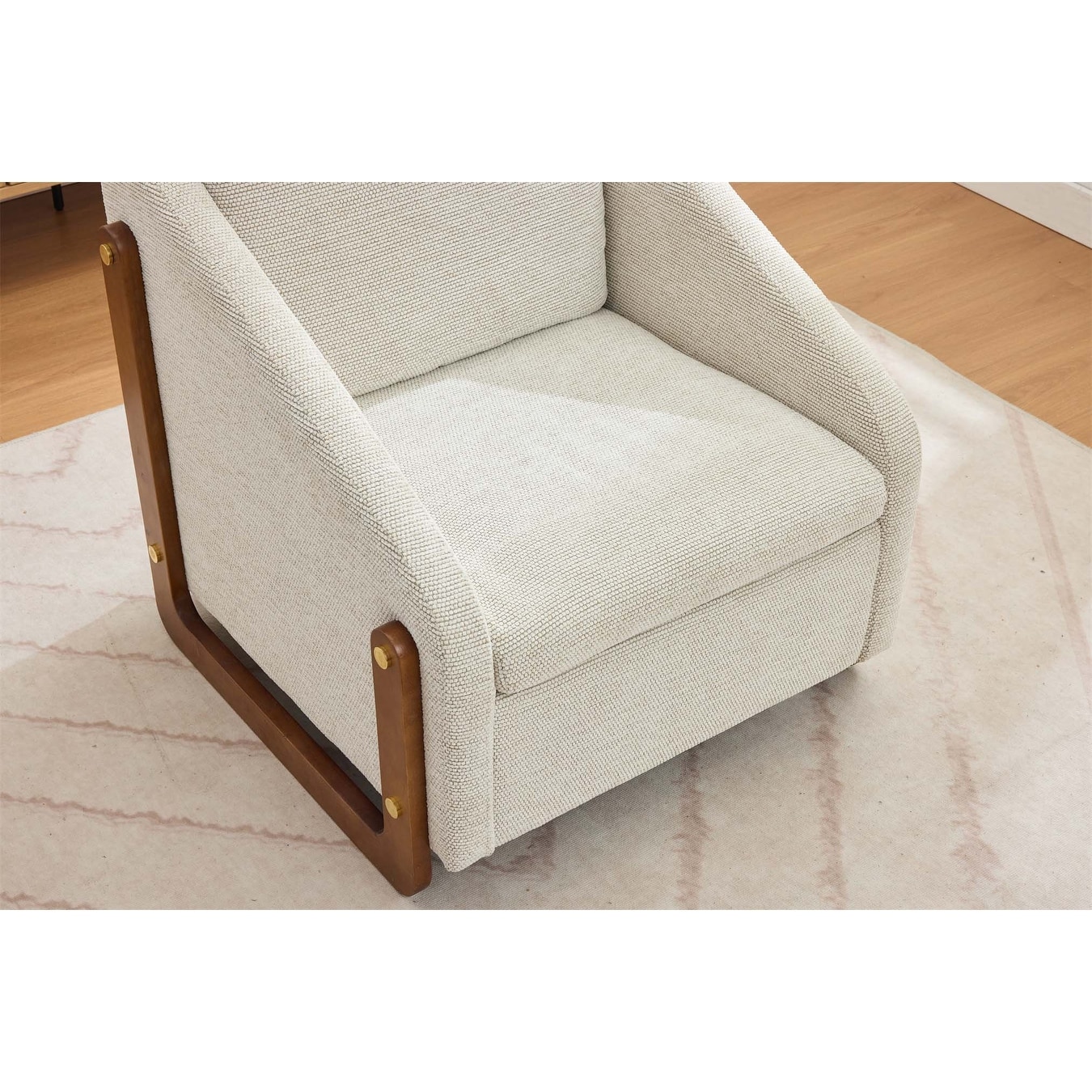 Chenille Fabric Modern Upholstered Armchair with Wooden Side Frame, Comfortable Accent Chair for Living Room and Bedroom