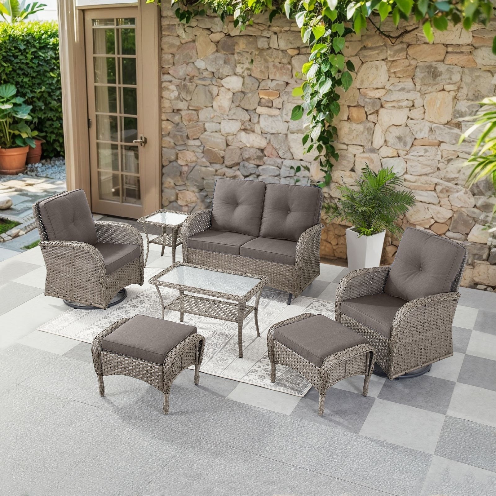 Pocassy 7 Pieces Glider Sofa with Swivel Chairs Ottomans Table