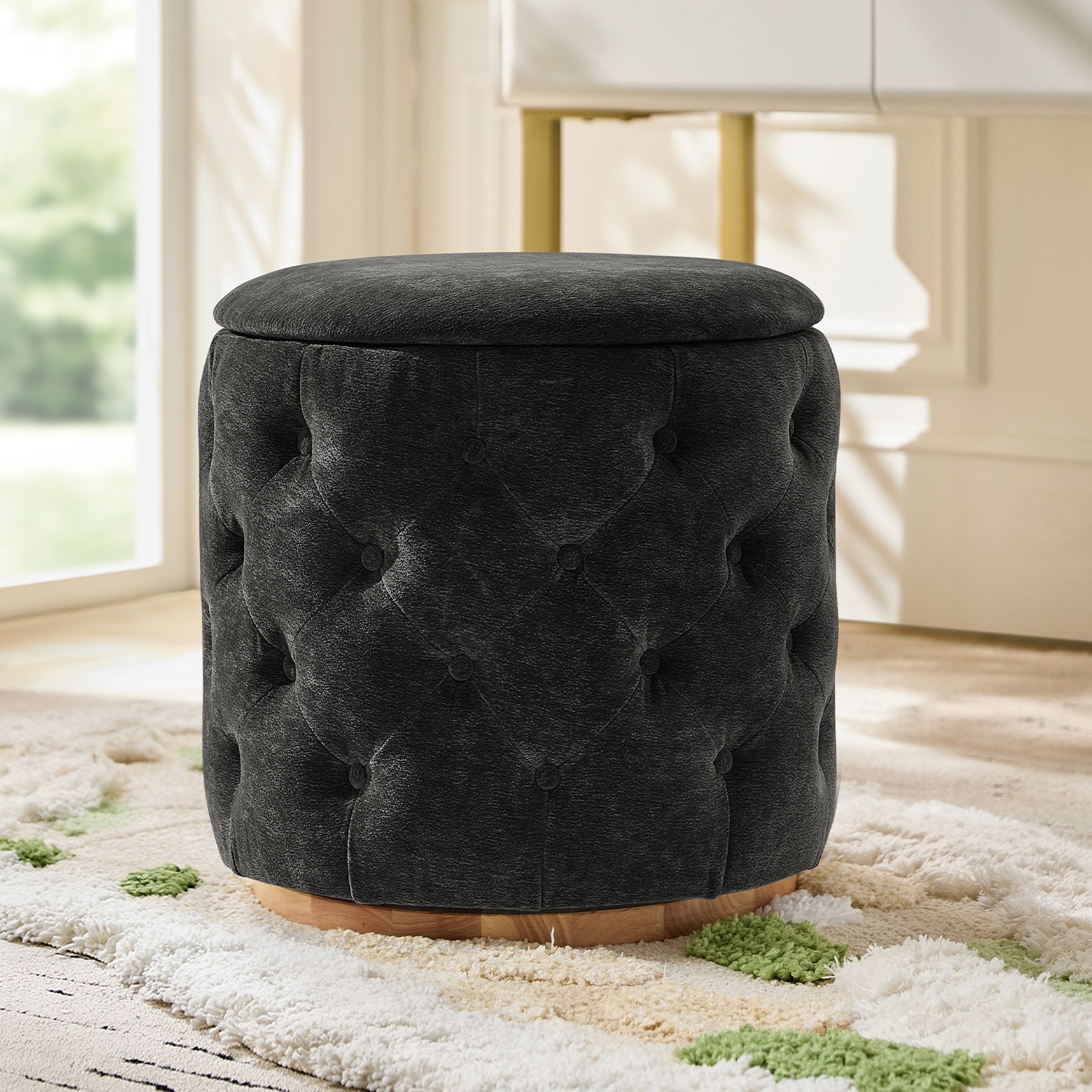 Venus Modern 19"W Tufted Ottoman with Storage and 360-degree Swivel Solid Wood Base by HULALA HOME