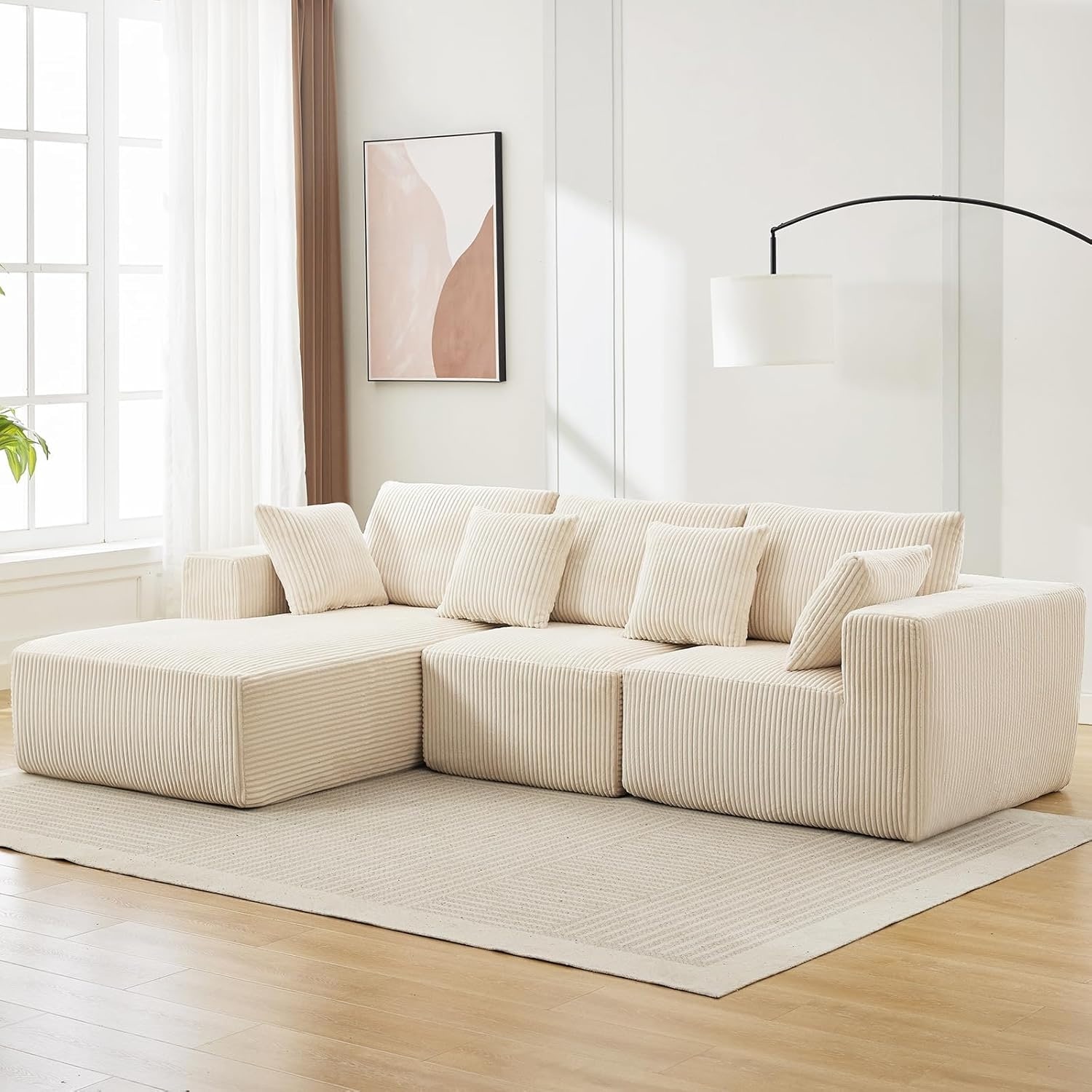 Cloud Modular Sectional Sofa with Chaise, Deep Seat Corduroy Sleeper Couch, No Assembly Required