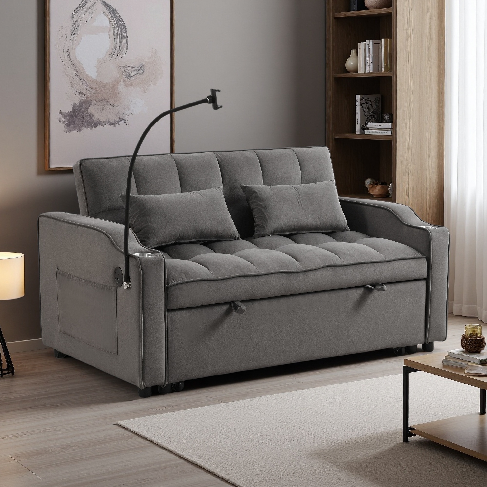 70" Velvet 3-Way Sleeper Sofa Adjustable Recline, Phone Stand and Easy Pull-Out Mechanism